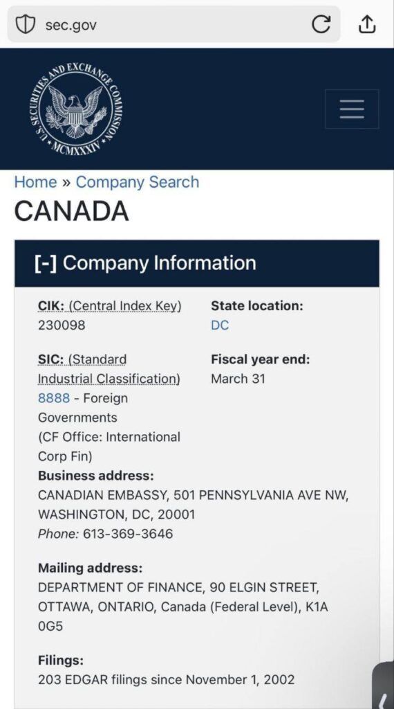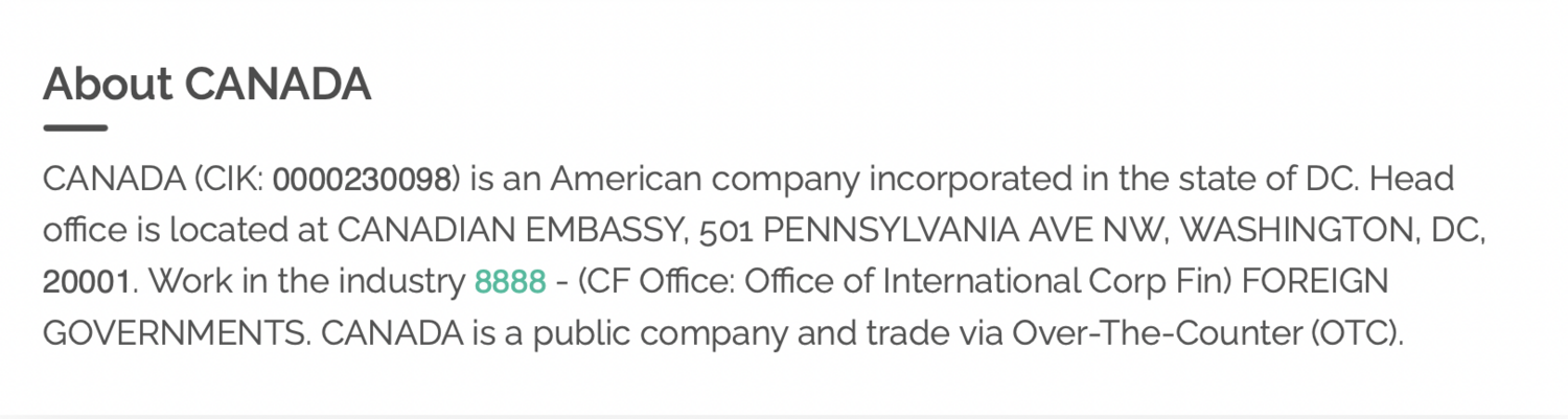 CANADA is not the only CORPORATION registered in the District Of Columbia. It appears to be much of the world.