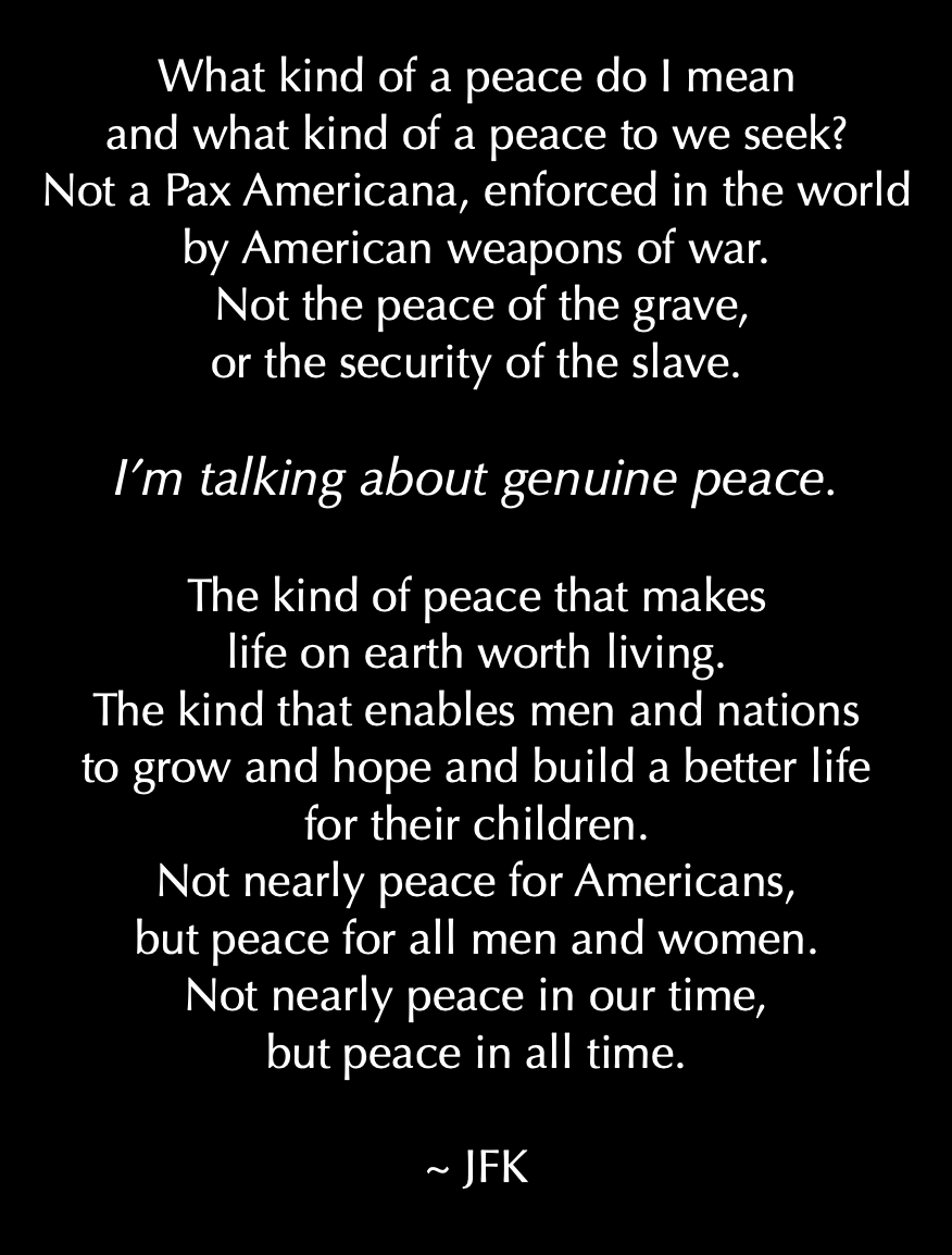 My fellow citizens of the world: ask not what America will do for you, but what together we can do for the freedom of man.