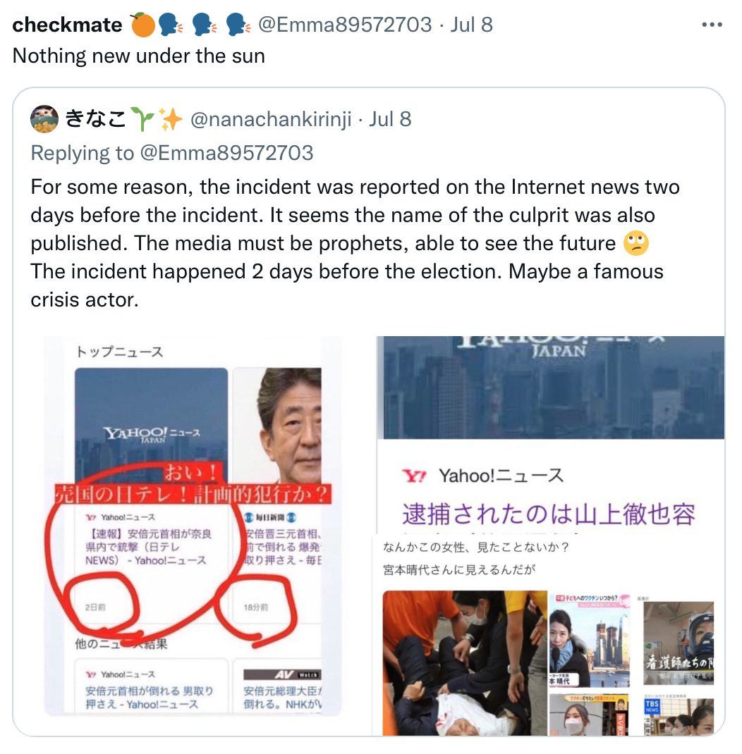 Shinzo’s assasination reported two days before incident.