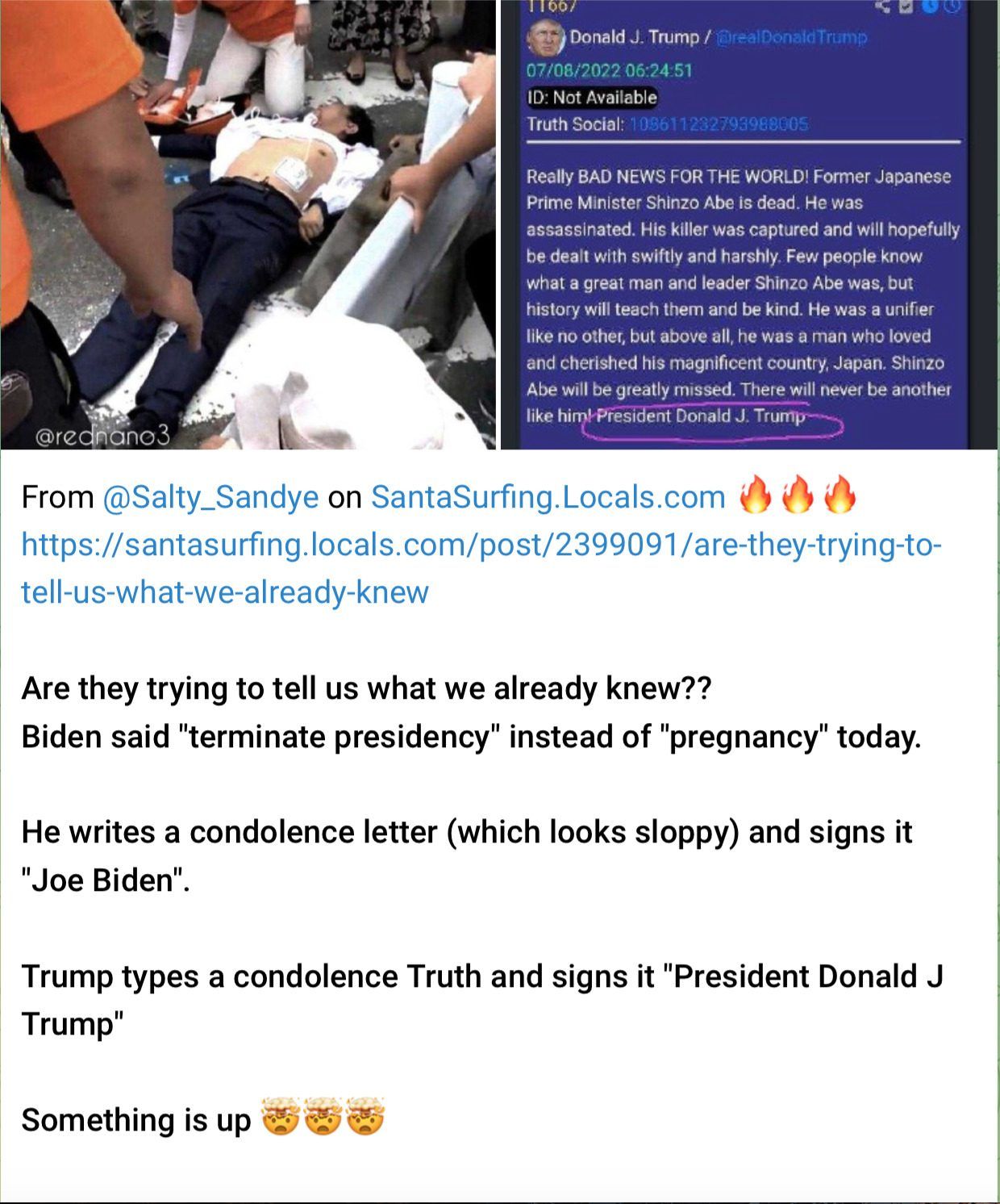 This President learned and knew all the corruption and evil WAR MONGERING the Deep State was controlling and creating and SHINZO knew of all the dead bodies ( intelligence CLASSIFIED information/ DEEP STATE OPERATIONS/ ALL AGENDAS CONNECTED TO THE KILLINGS OF INNOCENT JAPANESE CITIZENS AND POLITICIANS… All for control by the world DEEP STAR CABAL)//