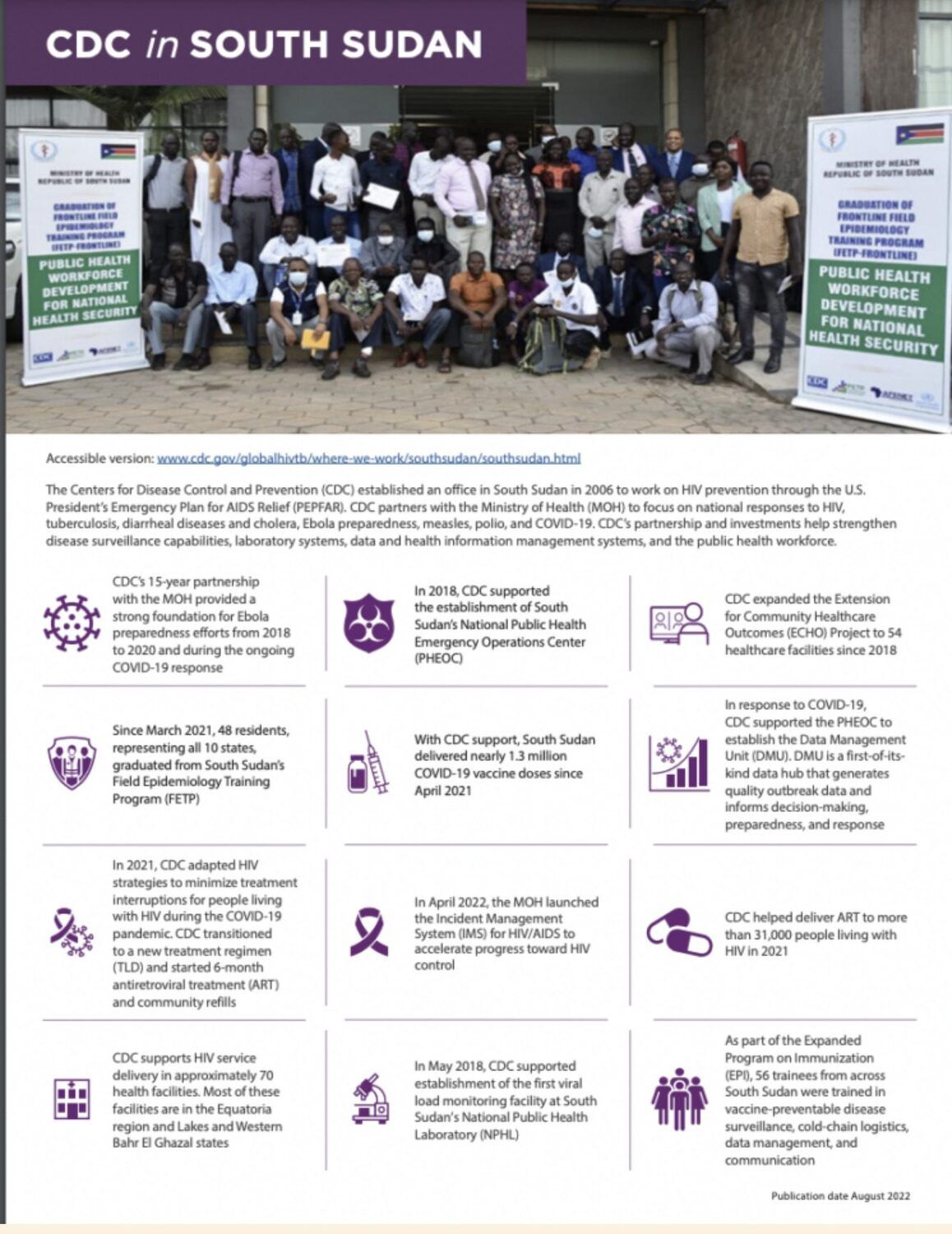 Thanks to Global Fund, ECHO, CDC and USAID, South Sudan has made progress in building and strengthening the laboratory capacity to test and report results in a safe, secure, timely and reliable manner for outbreaks and emergencies, the challenging circumstances notwithstanding said Evans Liyosi, WHO Representative for South Sudan. He noted that this development is in line with the expectations of the WHO Laboratory Improvement for Emergencies (LIFE) initiative and the International Health regulations, for vulnerable WHO member States including South Sudan”
