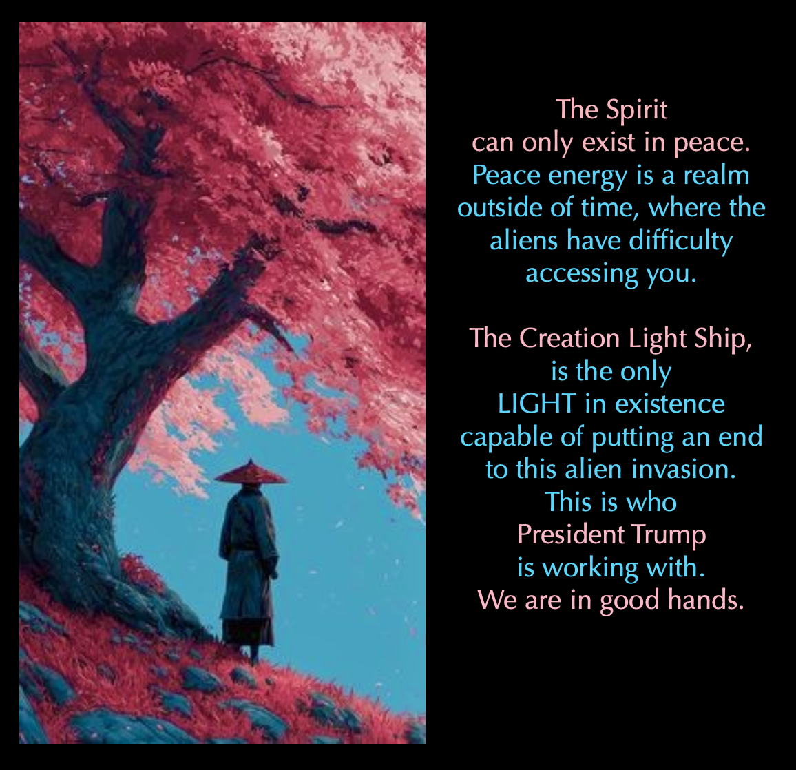 The most important thing to focus on in life is living in your heart, in the moment, communicating with your own Spirit, relying on Pure Consciousness and the guidance of your own LIGHT within, to navigate life. This will bring you into PEACE. The aliens are not the least bit interested in those who live in peace. They want drama, trauma, extreme emotions, and mental chaos to feed on.