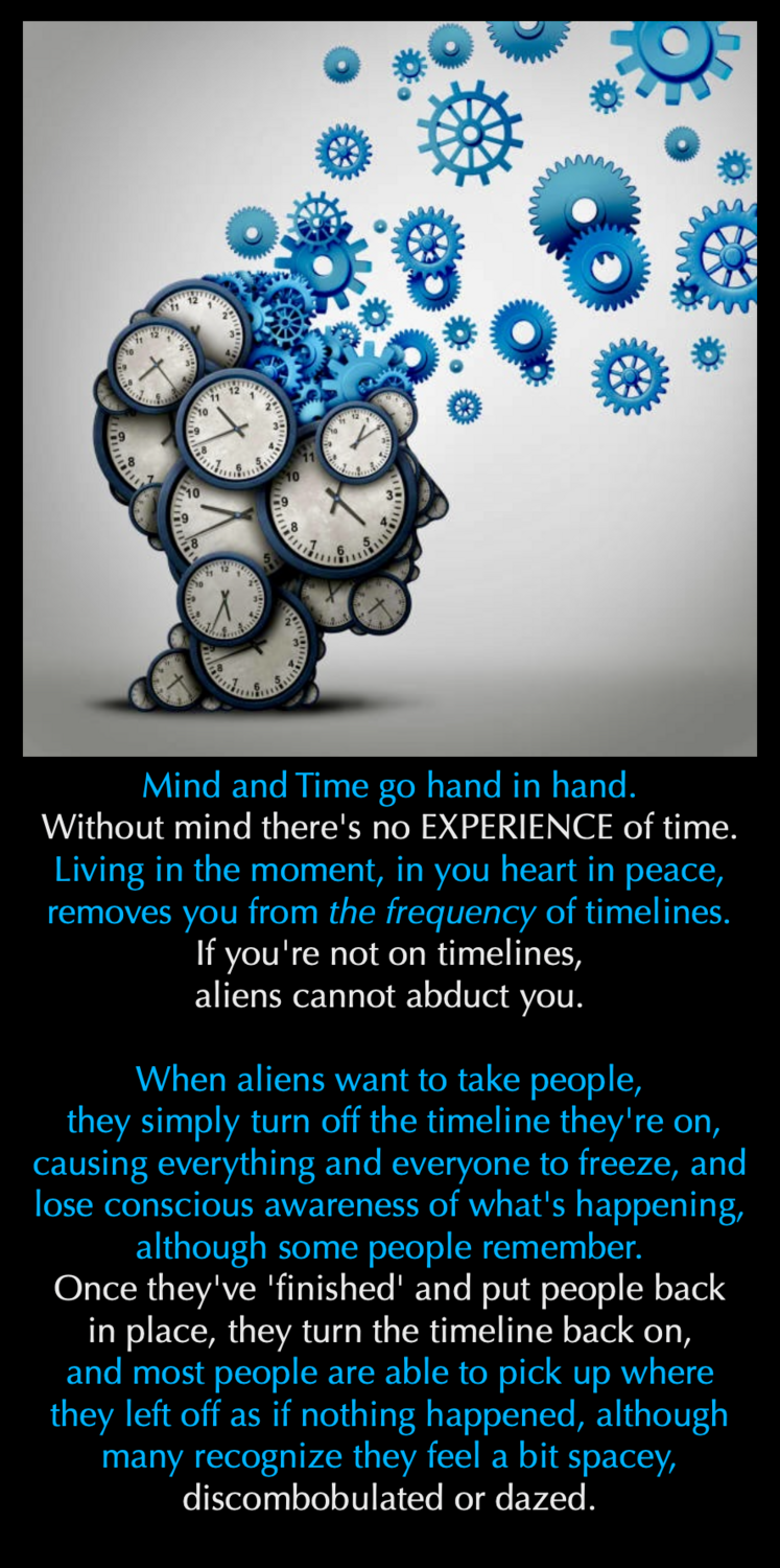 This is accomplished due to timelines. As you may know, the aliens basically invented time and timelines specifically for this sort of control over other species. Every “Time Change,” such as Daylight Savings Time, is an alien psyop to check and see who’s more enmeshed with their programming, therefor, more easily abducted.