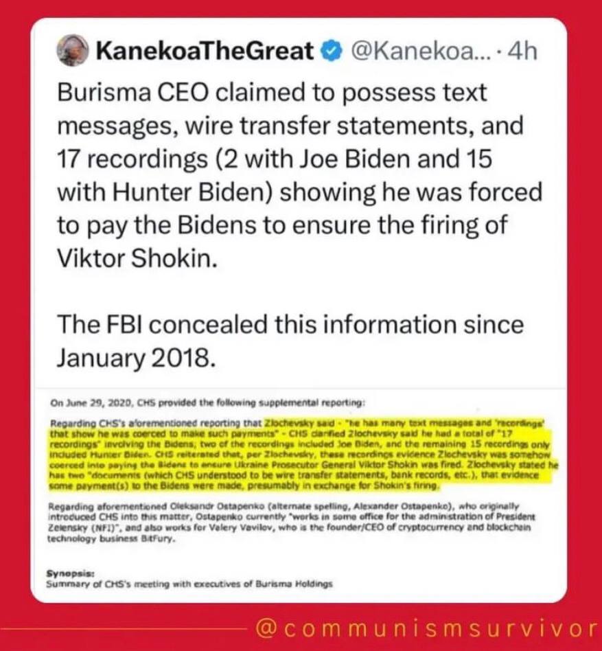 According to the document, Biden’s bribery arrangement was described as “poluchili,” which is Russian crime slang for being “forced or coerced to pay.”