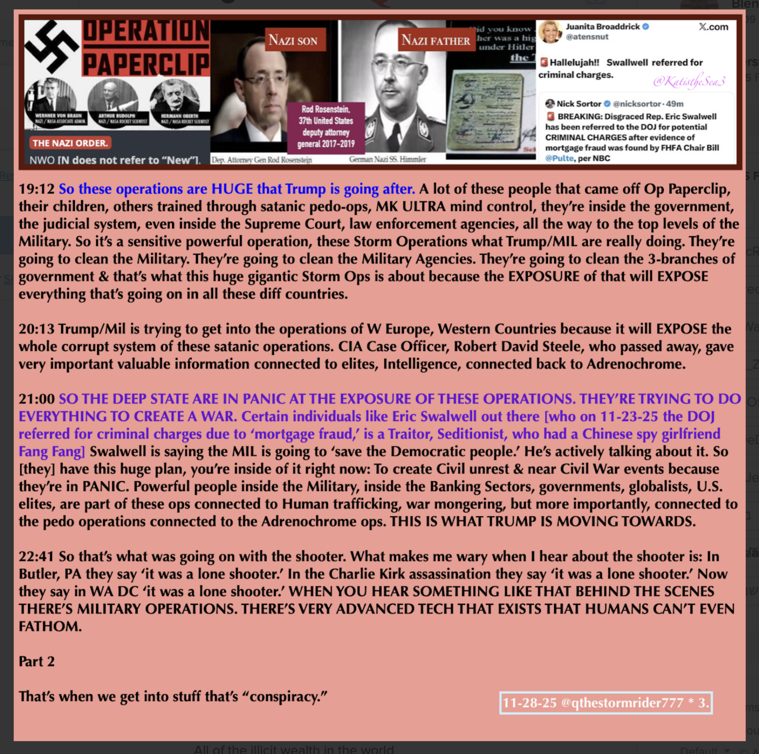 Kat’s transcript contains important excerpts. To hear and see QTSR delivering his complete videos, you can join his channel on Patreon with this link:
