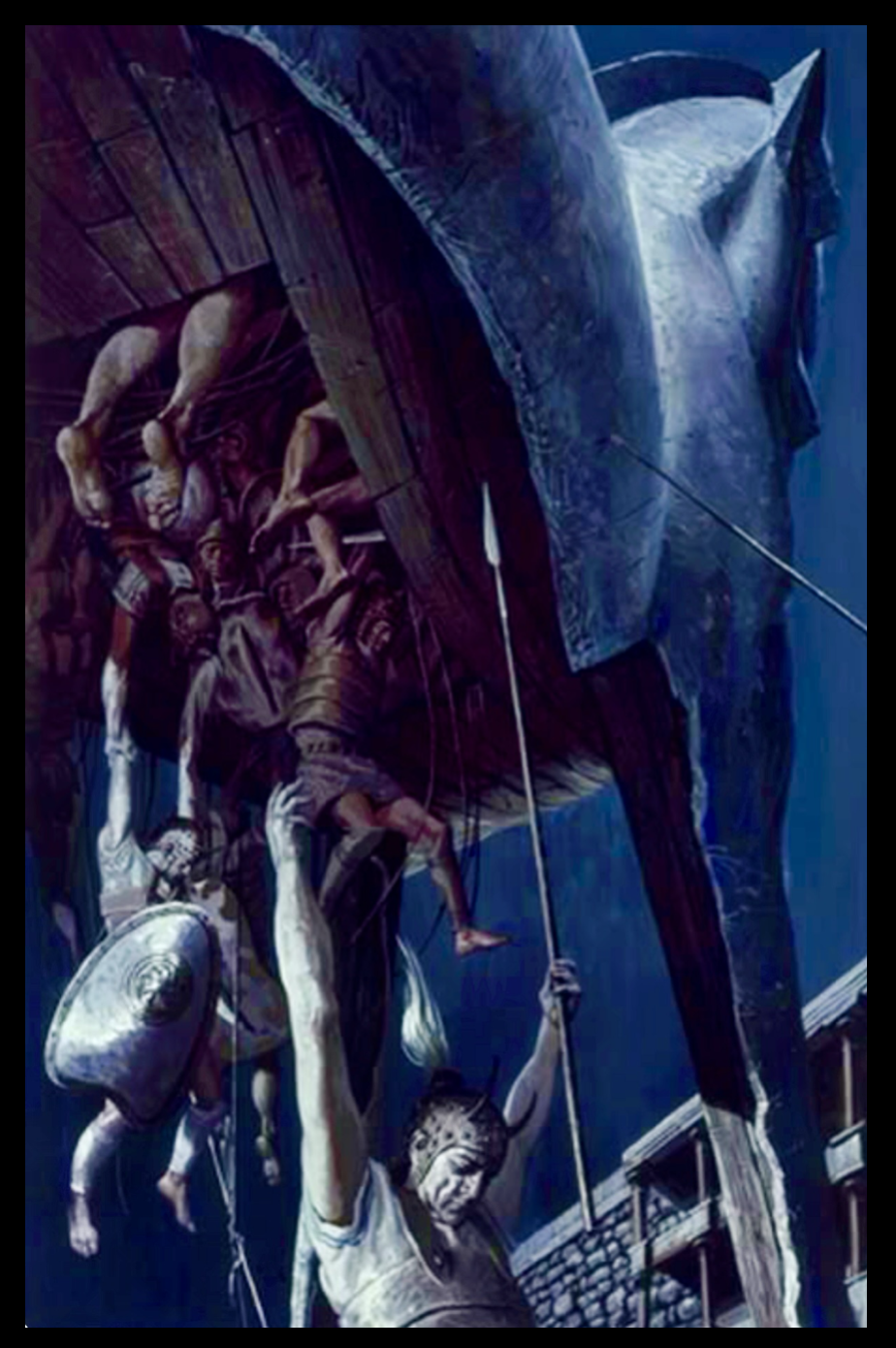 The Trojan Horse from Greek mythology smuggled enemy soldiers into the city of Troy as an offering to the Goddess Athena. When the city was ASLEEP, the soldiers emerged and destroyed their enemy.