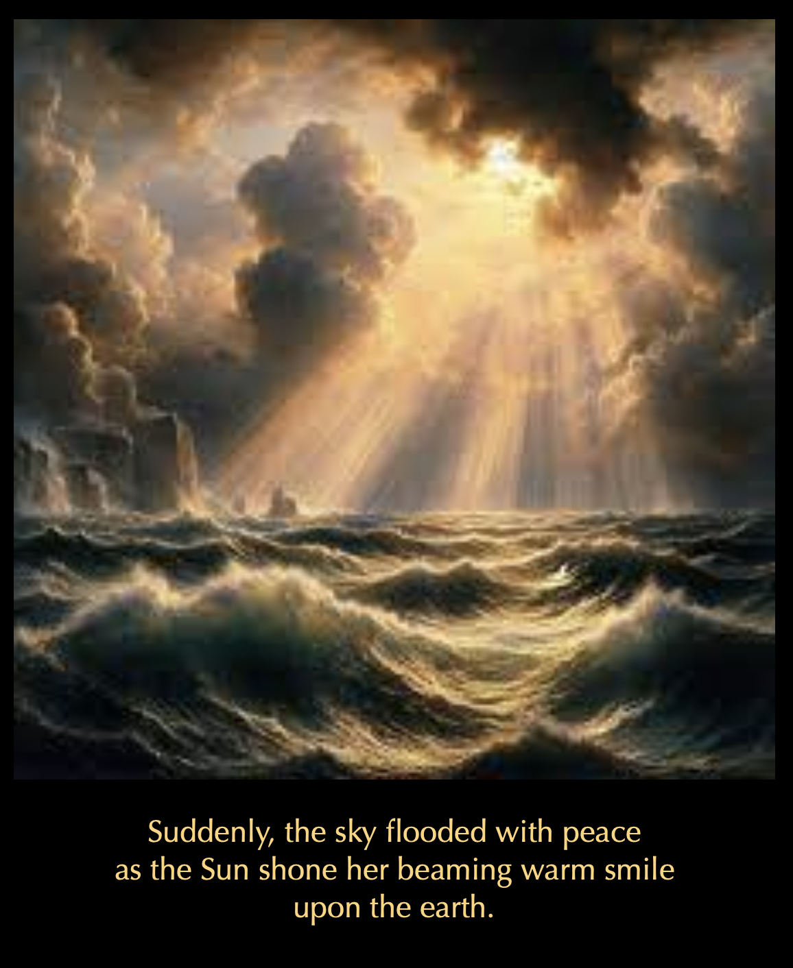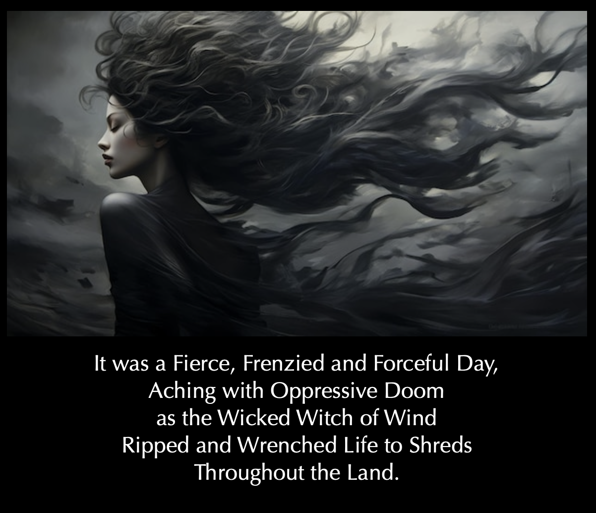 The Wicked Wind couldn’t believe she’d lost, certain of her invincibility. With all her Wickedness established and rooted on earth, how had her Witchy plans been instantly extinguished? Her black clouds dispersed, removing every condition fueling her total take over as she disintegrated in the streaming warmth of the Sun.