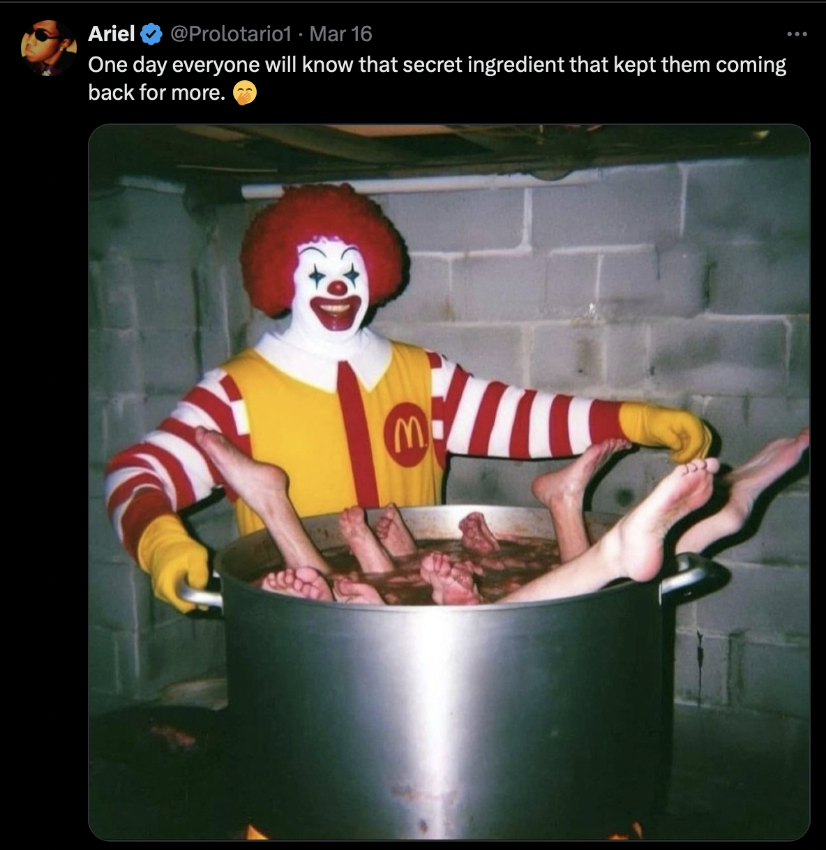 McDonald’s represents all darkness combined. It’s symbolic of all the horrors happening on this earth, above and below. It’s all ending.
