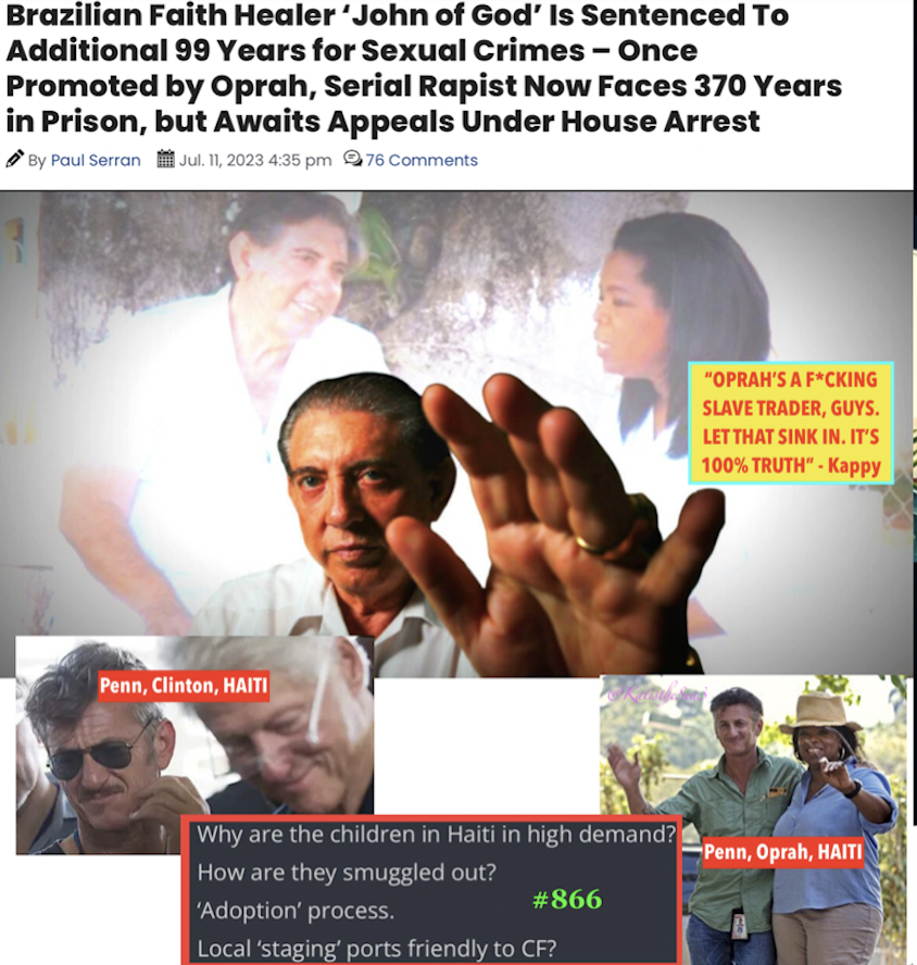 For some reason Oprah didn’t tell her audience that John of God was literally farming babies through the sex slavery of very young girls and selling infants around the world to the highest bidder.