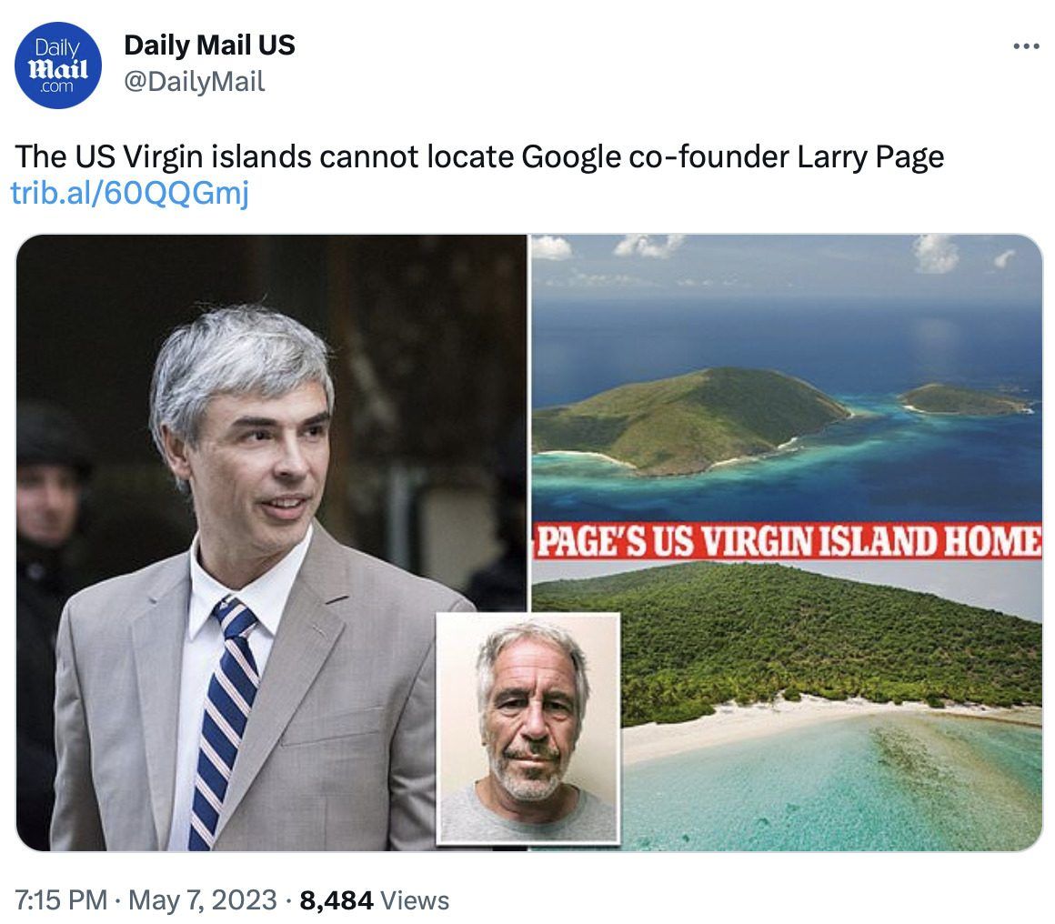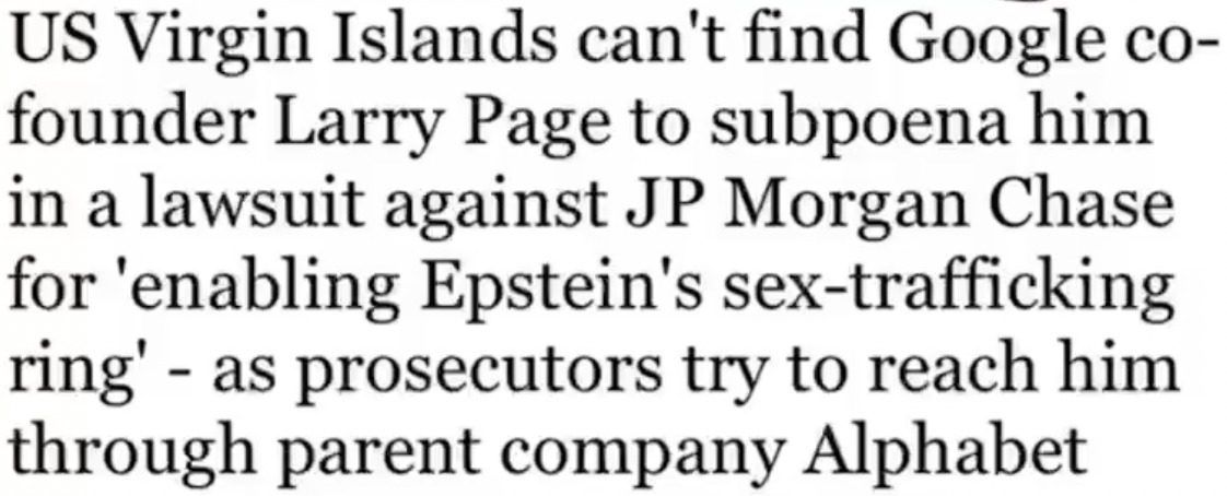 Now you know why LARRY PAGE Google cofounder is on the run from the law and did not show up for his subpoena in the Virgin islands EPSTEIN trial.