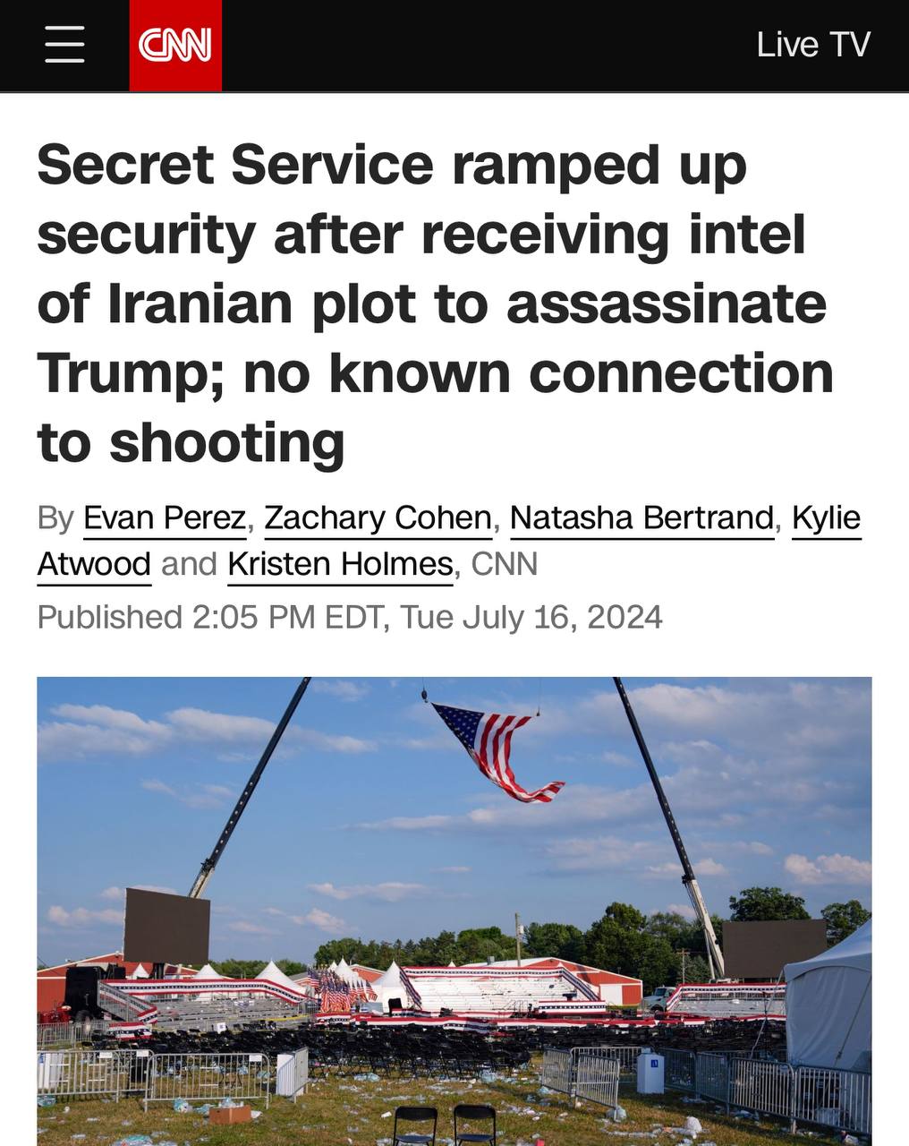 >White hats ( military alliance ops) had to stage the first assassination attempt to give a CLEAR AND PRESENT DANGER warming to the people of the United States > because the next Assassination Attempt is going to be bigger and> REAL) > and could lead to full war with Iran as the deep state is planning>
