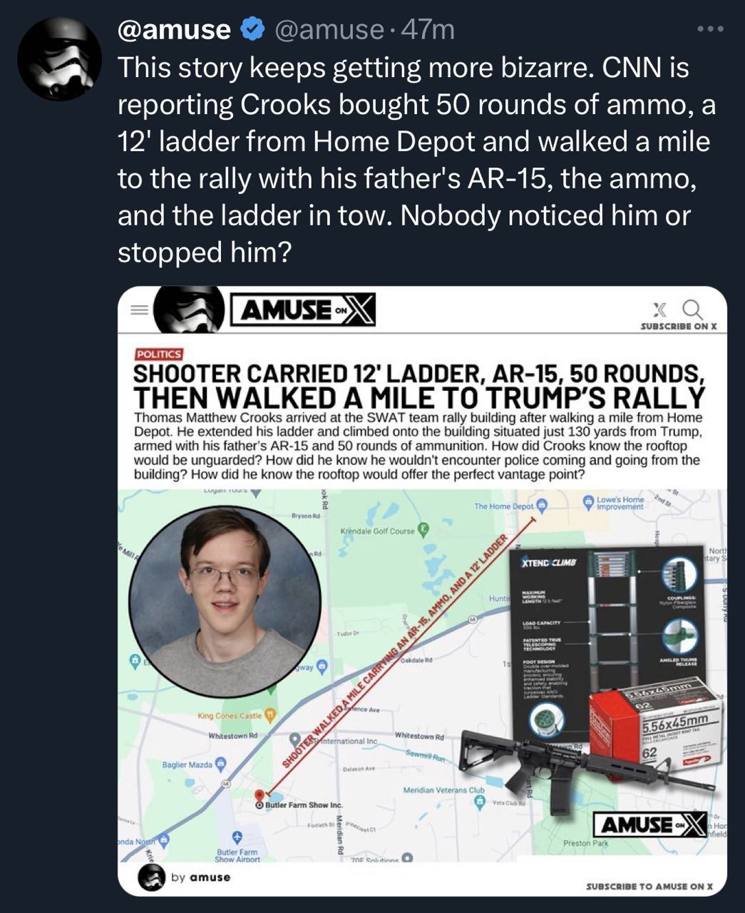 >>> The White hats ( Military operations+) created the fake Assassination attempt to bring down the DEEP STATE operators around Trump and the infiltration of the Biden administration Secret Service that is being used to protect Trump at the rallies