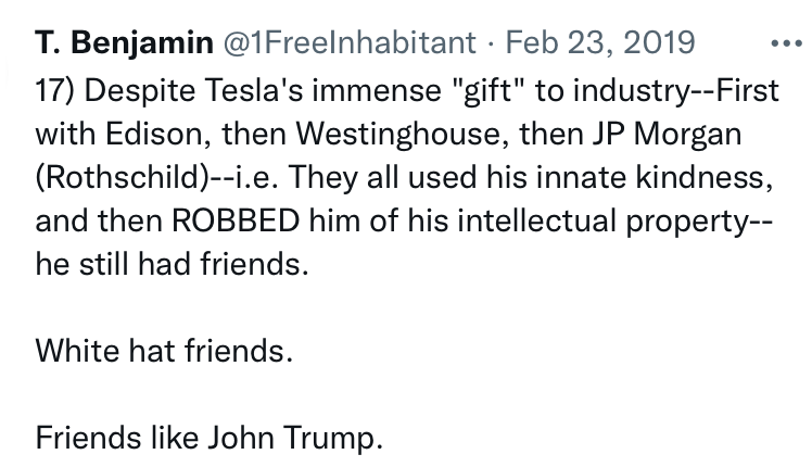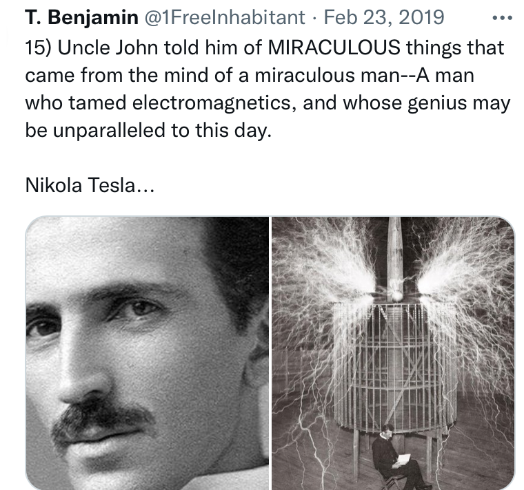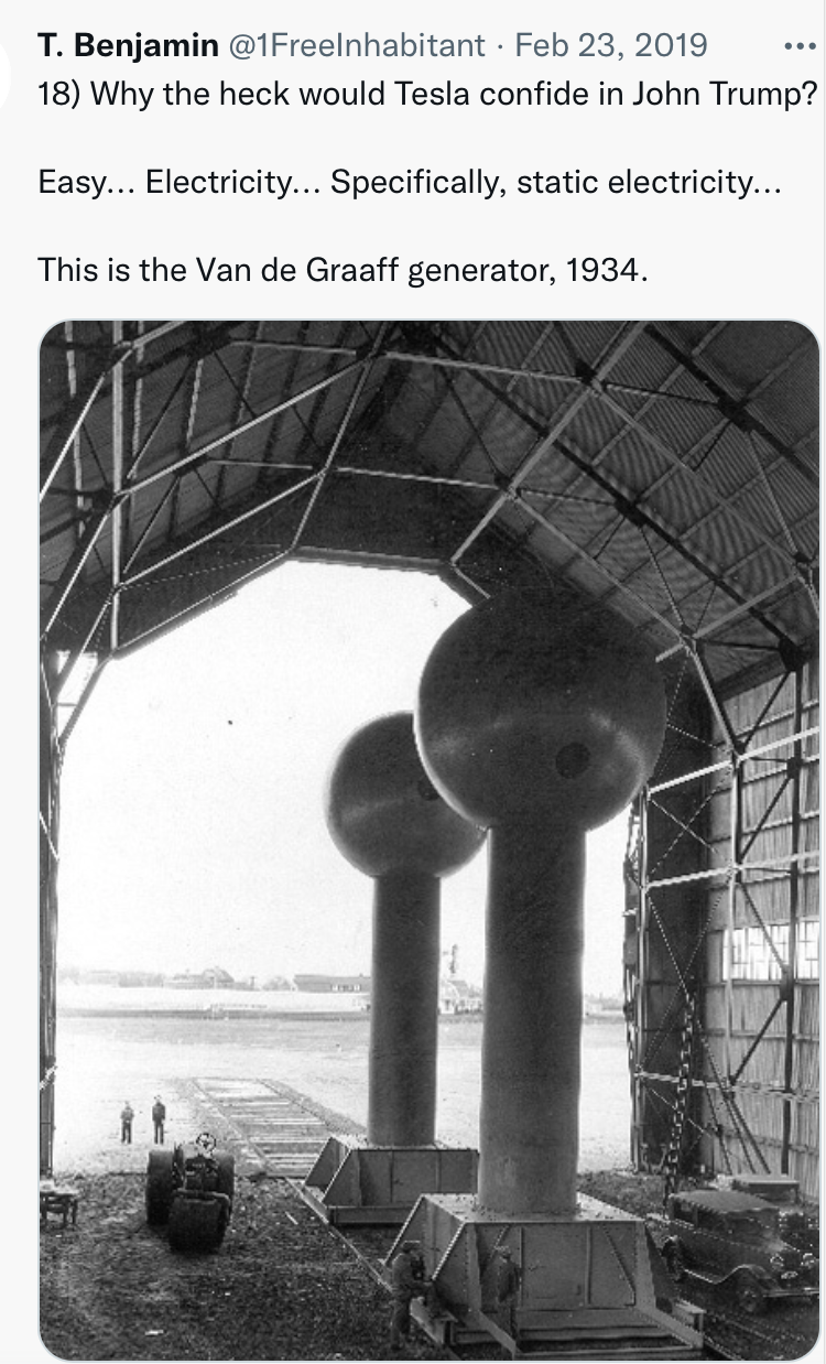 The Spirit within Nicola Tesla, John Trump, Van de Graaff and Donald John Trump are all one in the same; the Spirit we know today as Q. This peaceful genius is currently in many bodies today primed for blessing humanity in extraordinary ways… a very patient and wise Spirit.