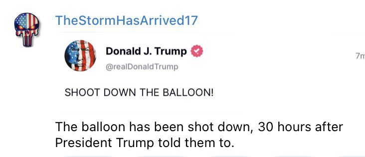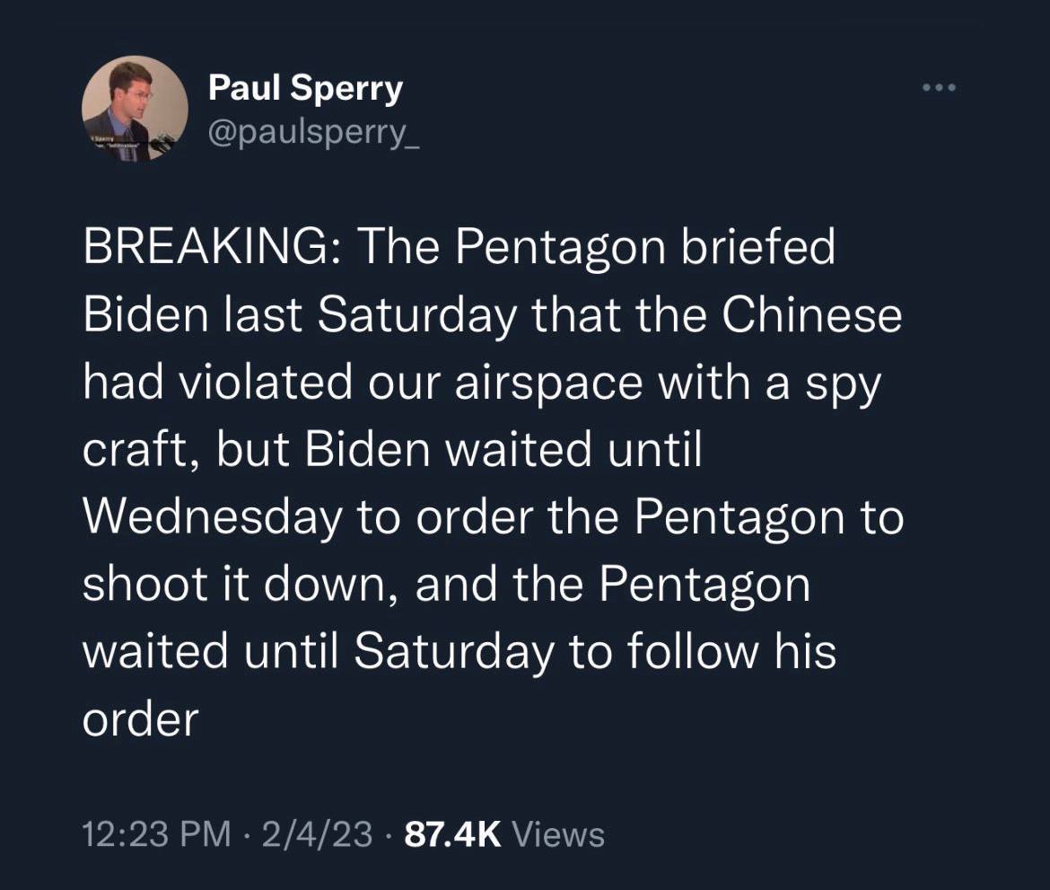 THE U.S. MILITARY was given orders not to shoot down the Chinese spy BALLOONS ( not spy balloons …….. The CHINESE already know where are all the U.S. missile silos are using their SATS for years ).. The orders not to shoot down the Chinese balloons came from BIDEN/ OBAMA and their [ DS] military force<