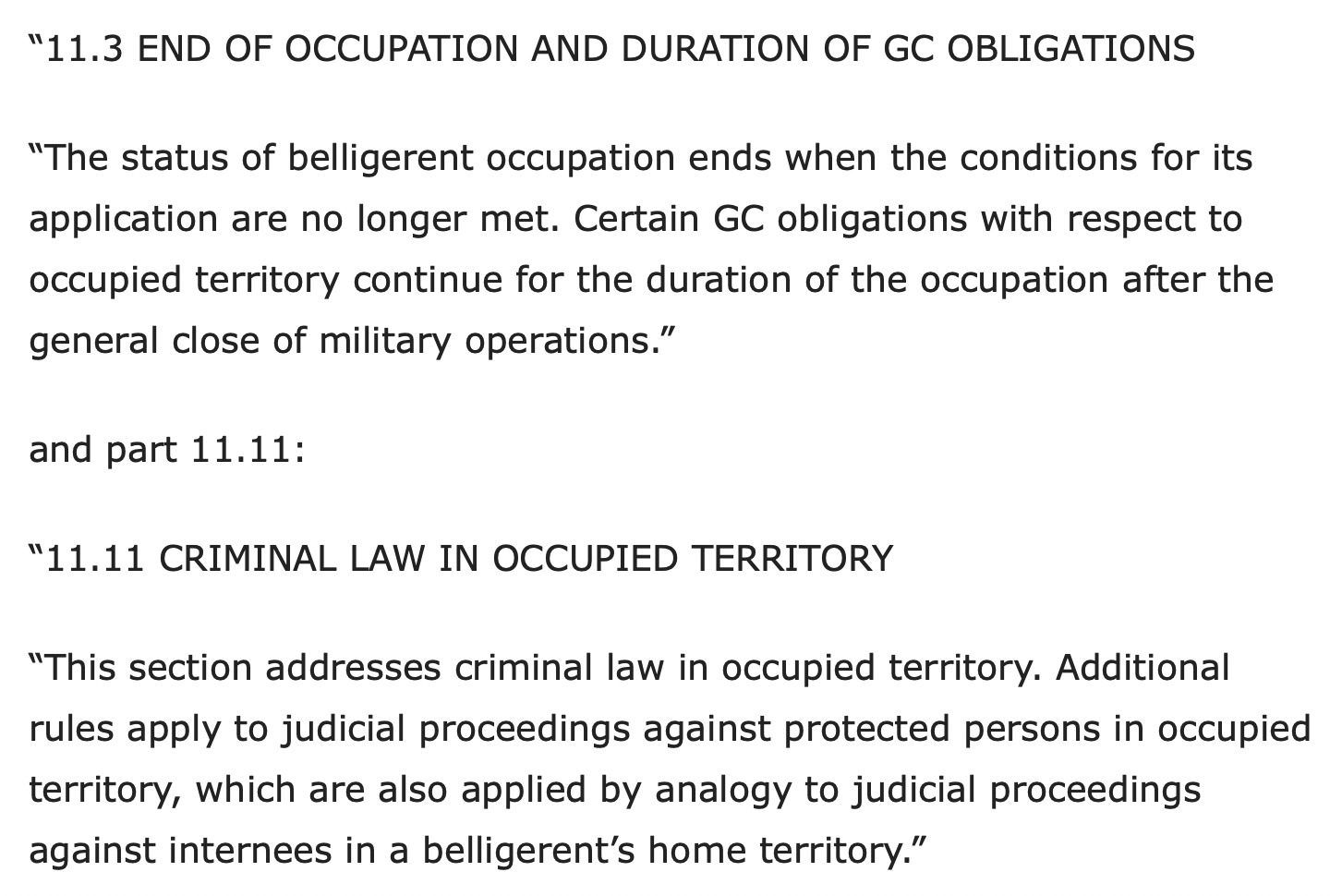 GC = Geneva Convention. Certain Geneva Convention obligations continue for the duration of the occupation after the general close of military operations.