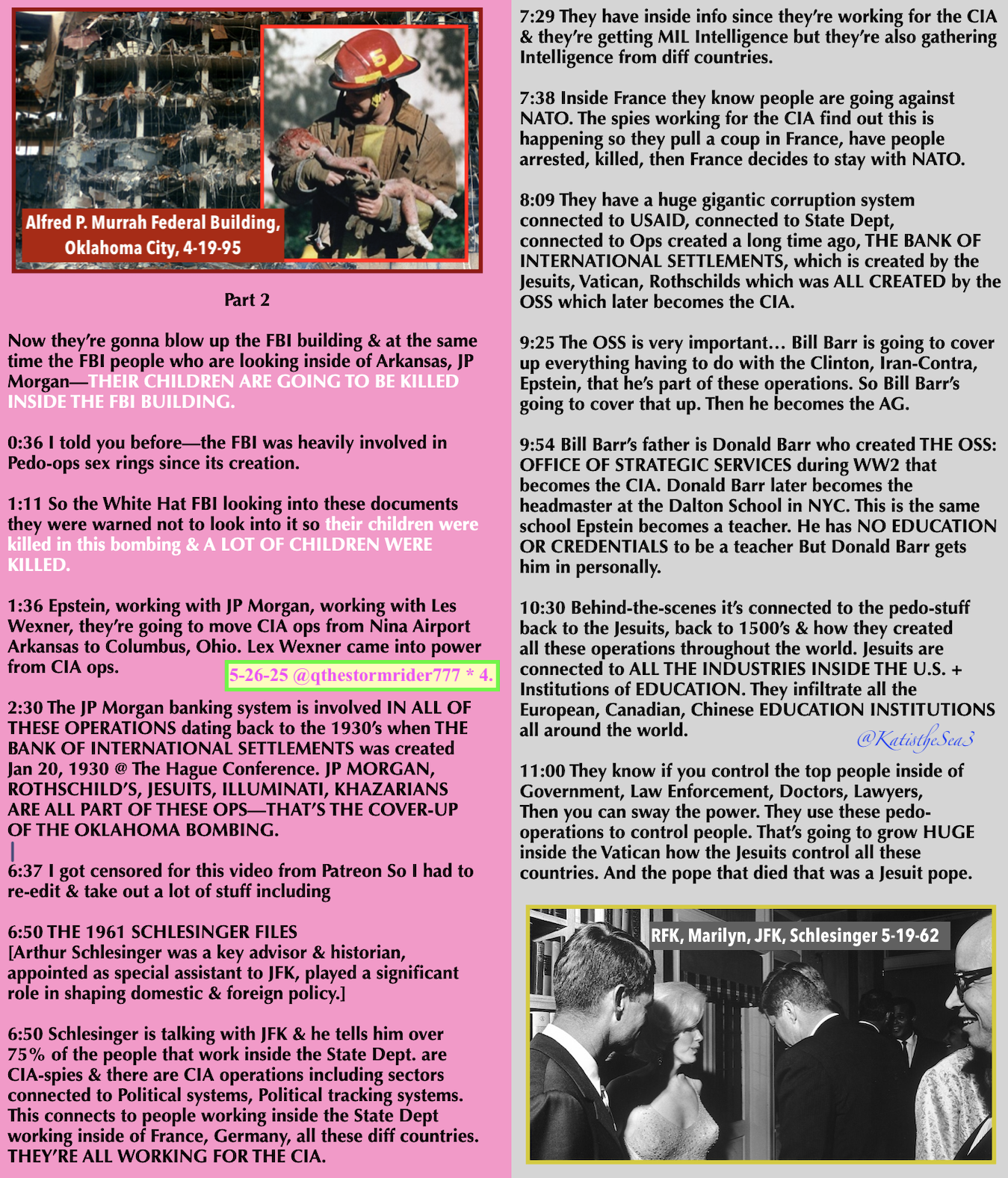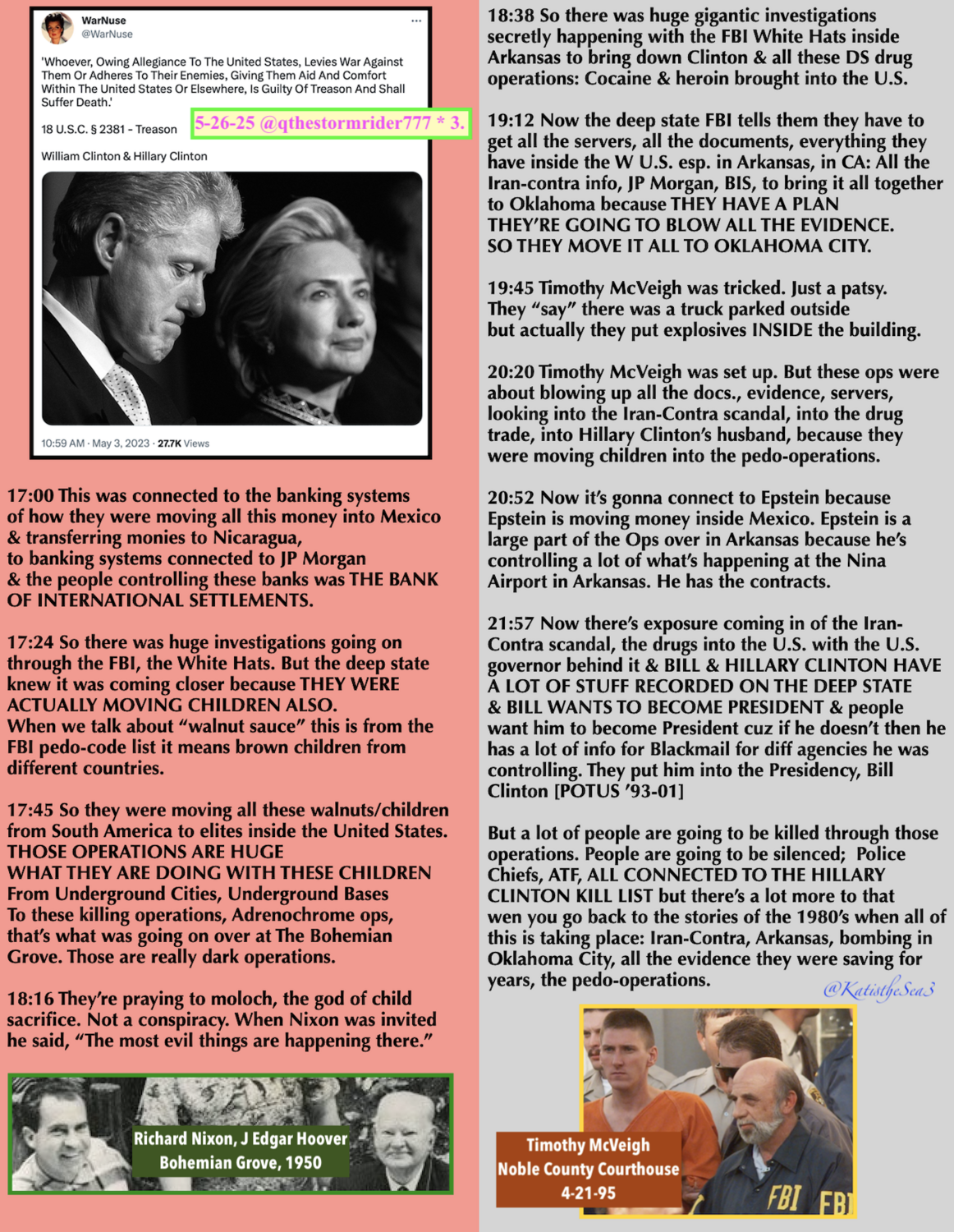 White Hat investigations were ready to bring down Clinton and the Arkansas Operations. Just before Hillary Clinton could be indicted for the Whitewater Scandal, the deep state had all the servers, all documents and incriminating evidence, along with the Iran Contra Scandal, JP Morgan, BIS documents and all the Pedo Operations, brought to The Federal Building in Oklahoma to blow it all up, along with the children of the White Hat FBI agents investigating them.