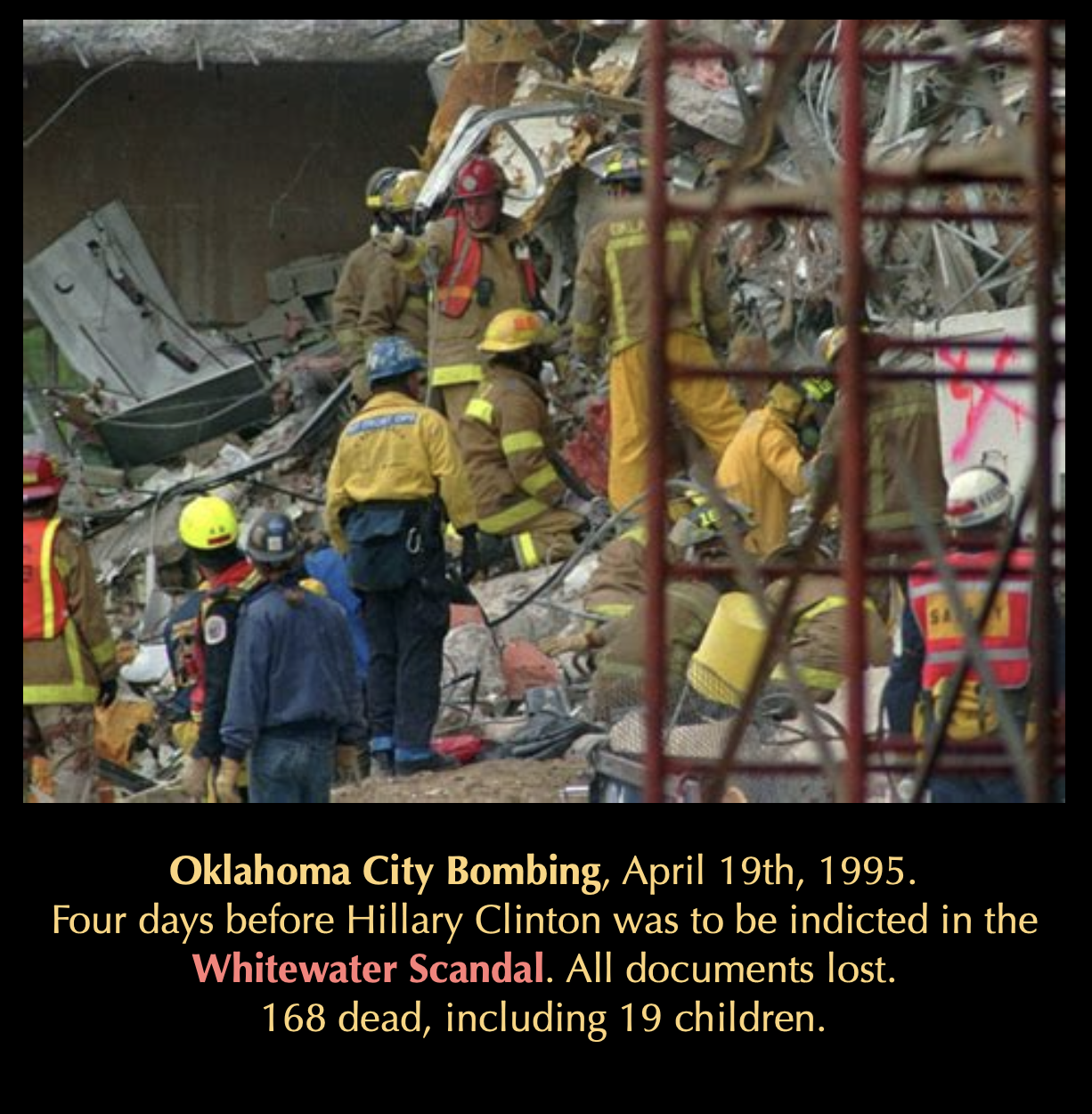 Oklahoma City Bombing exploded all servers and data on drug running, human trafficking, pedophile-ops, blackmail, money laundering and all Clinton evidence.