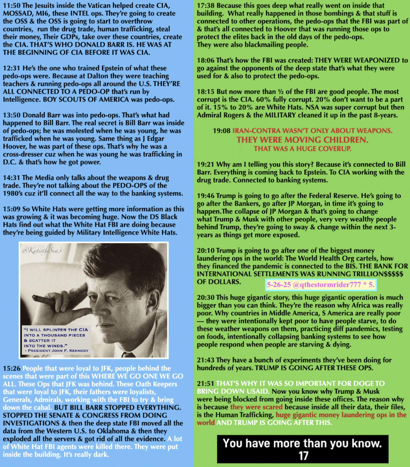 Kat’s transcript contains important excerpts. To hear and see QTSR delivering his complete videos, you can join his channel on Patreon with this link: