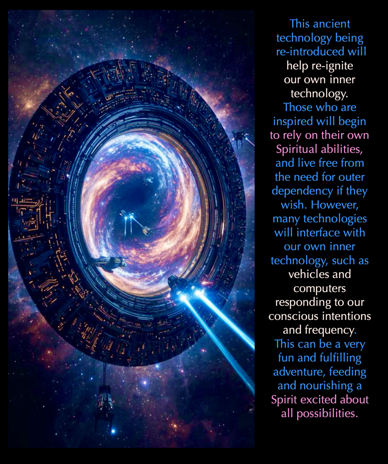 The ancient technologies being re-introduced to this planet, will bring back more freedom, health, vitality, longevity and speed. This is very exciting. More importantly, our own ancient inner technologies will come back on line, as we connect more with our own Spirit.