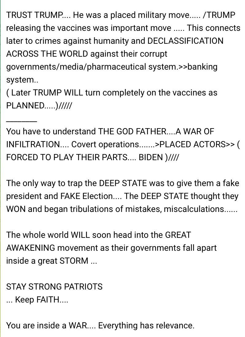 >WHEN TRUMP released the vaccines in record speed….it completely disrupted the DEEP STATE CABAL plans…( Their original plans was to kill and enslave humanity through 5 years of torture/full lockdowns/martial LAWS/mental psychological ops >[MSM] EXTREME EXTREME FAKE DEATH COVERAGES WORLD WIDE >>MOCKINGBIRD<<//