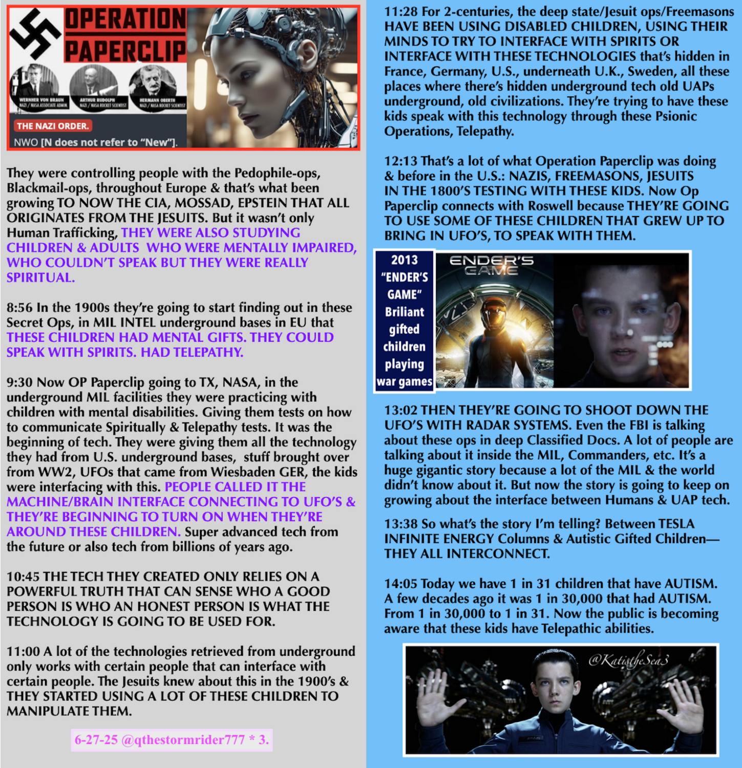 Now we take children who’ve been pulverized by chemicals the deep state poured directly into their veins. They’re unable to rely on their body or their mind, forced to interface directly with their Spirit.
