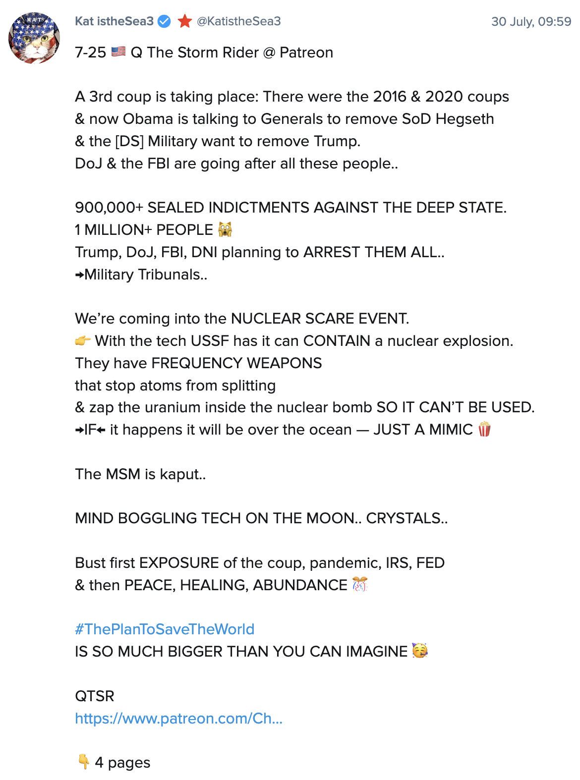 Kat’s transcript contains important excerpts. To hear and see QTSR delivering his complete videos, you can join his channel on Patreon with this link: