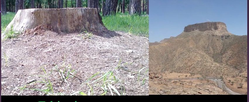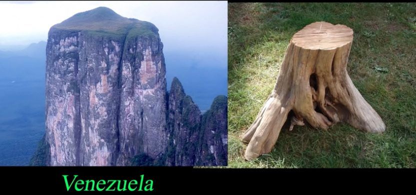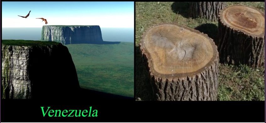 Today’s tree stumps verses ancient tree stumps assumed to be mountains below