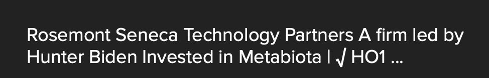 Hunter BIDEN ( +The Big Guy) and Rosa Seneca are major investors in METABIOTA Inc.