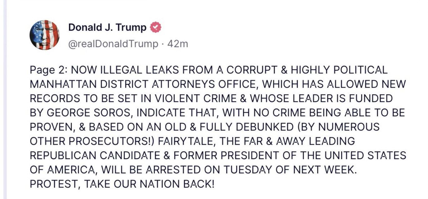 ⚠️ Trump says he will be arrested!