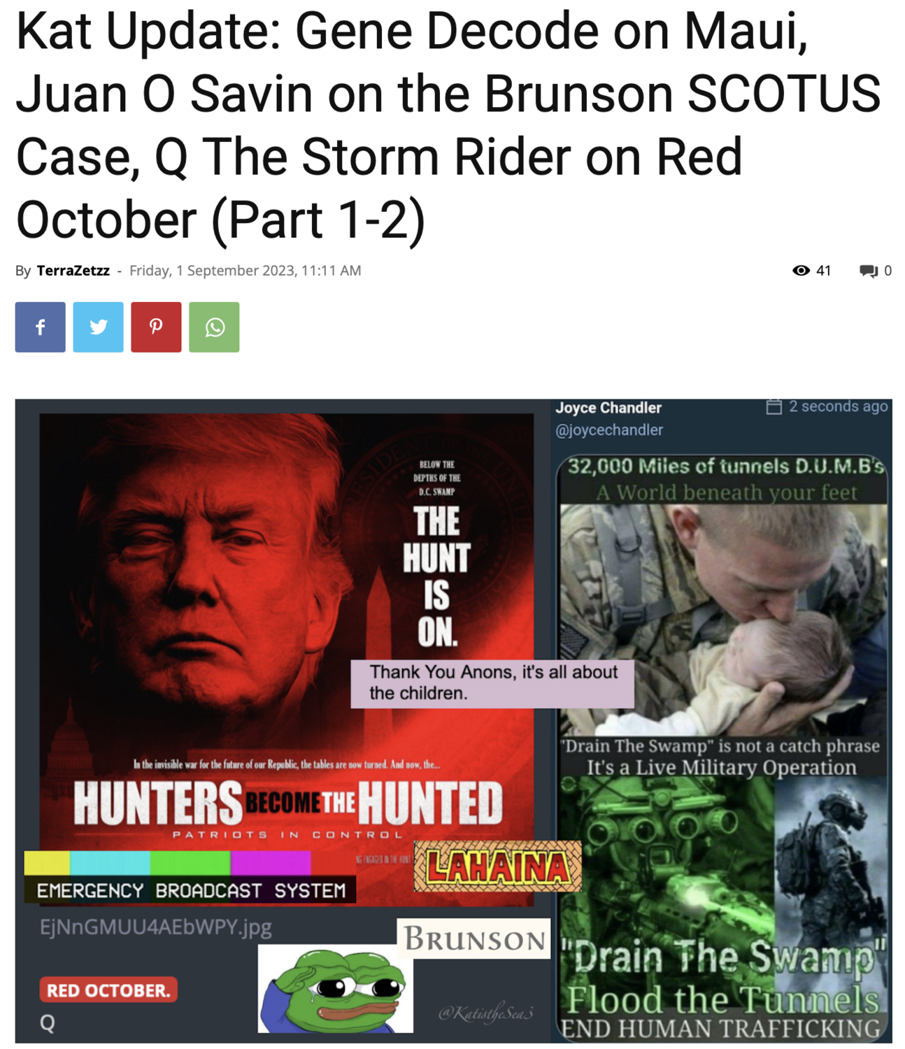 Important Messages Gene Decodes on Maui Posted September 1, 2021September 2, 2023 For The People ____________ https://operationdisclosureofficial.com/2023/09/01/kat-update-gene-decode-on-maui-juan-o-savin-on-the-brunson-scotus-case-q-the-storm-rider-on-red-october-part-1-2/ ____________