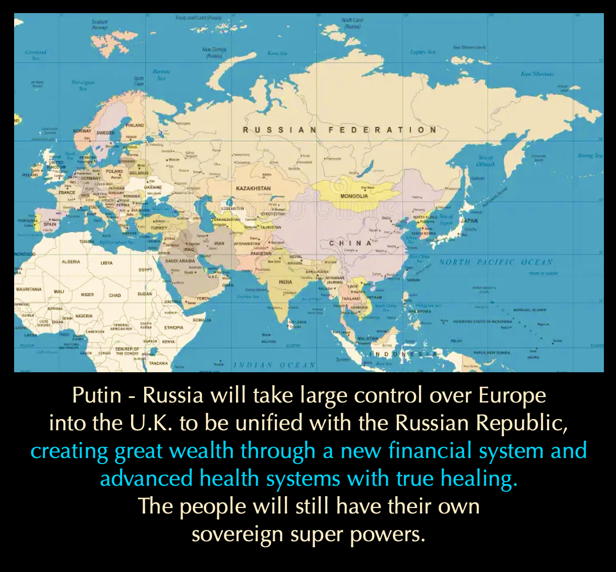 A similar unification will unite Eurasia, overseen by Mohammed bin Salman. Modi will take India and China into a Republic, eliminating all wars inside of the middle east. This is connected to saving the Palestinian people, and the Light in surrounding areas. In effect, this will remove the GLOBALIST super powers installed by Rockefeller/Rothschild/Fallen Elohim, the architects of NATO, UNITED NATIONS; ALL GLOBALIST OPERATIONS, which are the most corrupt enemies of the people and killing institutions in the world.