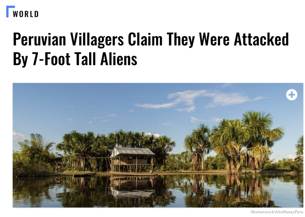 Frightened Peruvian locals claim alien creatures are appearing in their village with large heads and yellowish eyes, resembling the Green Goblin from the movie Spider Man.