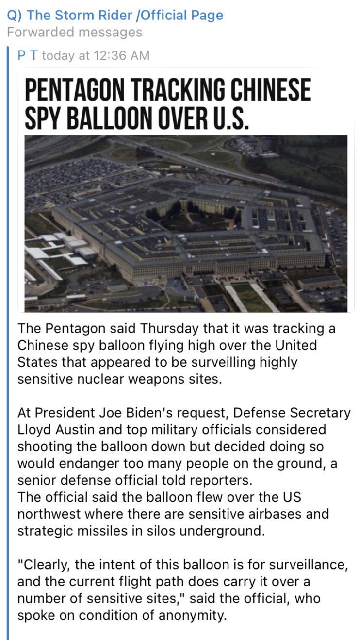 With all their technology and infiltration, Communist China needs a VISIBLE Spy Balloon to observe our Nuclear Facilities? Is this a visible threat? A Trigger?