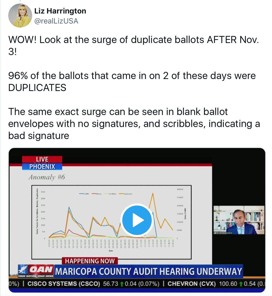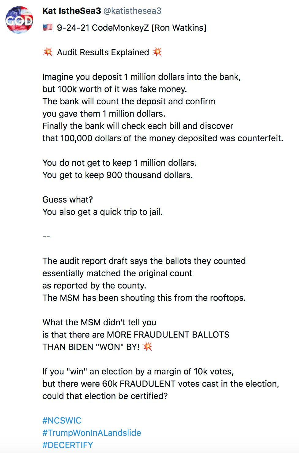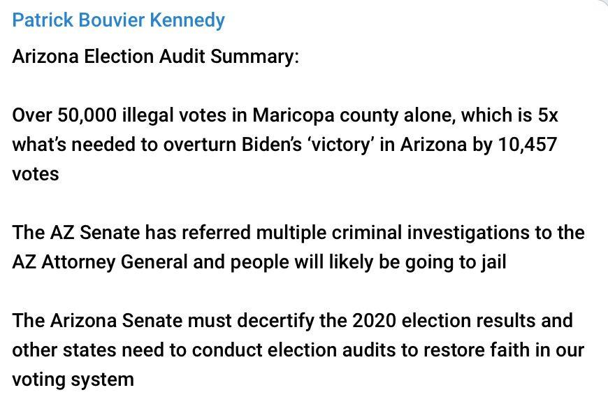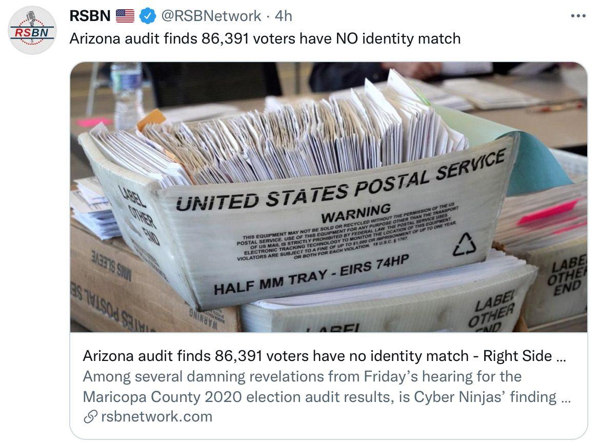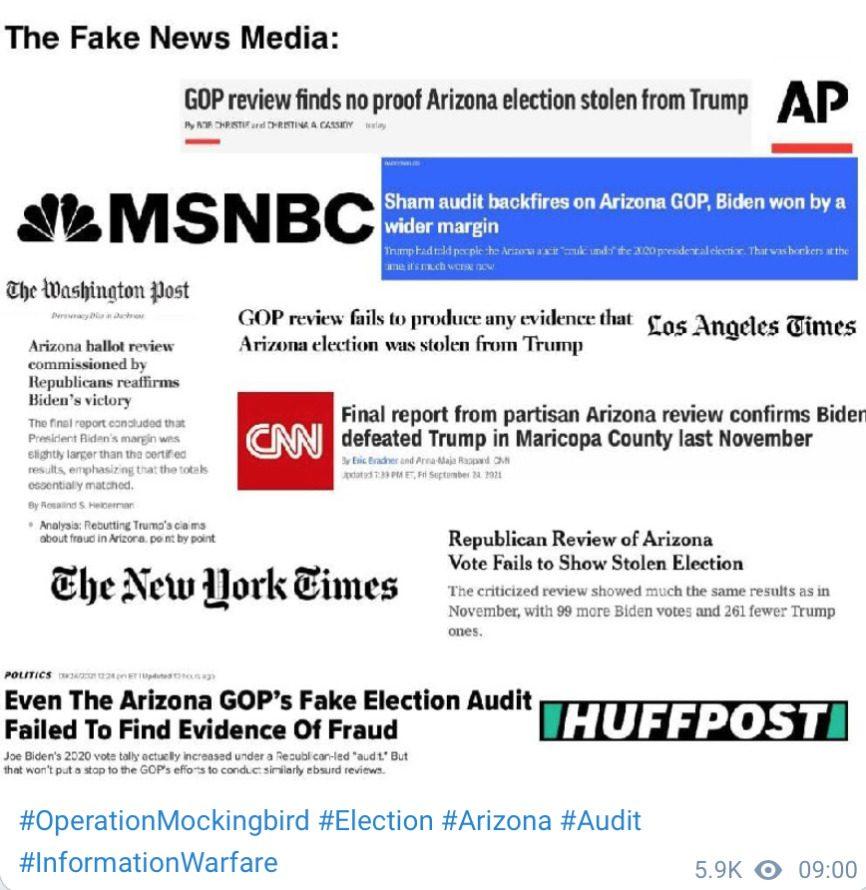 We have really just begun, and the 2020 election audit results have already revealed such egregious fraud it’s being called the least secure election of all time. The Fake News want everyone focused on the ballot count. What matters is if those ballots that were counted are valid and legal and MANY WERE NOT. Do you see how the main stream points the public in the wrong direction and lies through omission? This is their modus operandi. They just legitimized a fraudulent election all over again almost a year later with their claim that the ballot count was the same, while ignoring all the evidence of fake ballots, duplicate ballots, ghost voters and flipped votes etc. 30,000 votes for Biden showed exactly the same phone number and they were counted as legitimate ballots AFTER polls were closed and no more ballots were allowed to be presented. Atrociously illegal! That’s Treason, punishable by death. No one involved with these crimes has any chance of escaping repercussions for their criminal behavior. We have it all! Tick tock.