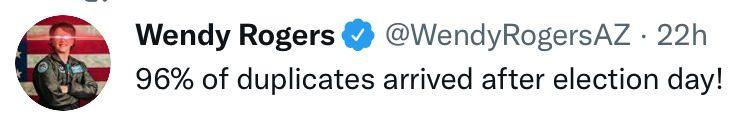 PRESIDENT TRUMP HAD WON THE ELECTION AS THE POLES CLOSED ON NOV 3, 2020. 96% of ballots that came in AFTER POLES CLOSED were DUPLICATES (that means fraudulent) and it appears THEY LED TO JOE BIDEN’S FAKE VICTORY.