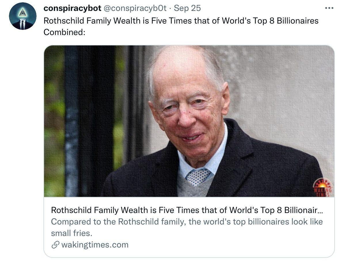 There are sinister groups of very dark beings who are intent on ruling over this world in a highly totalitarian manner using humanity as their slaves, food and barter. Rothschild is one of their slaves. We don’t even know the names of the “rulers” above him.