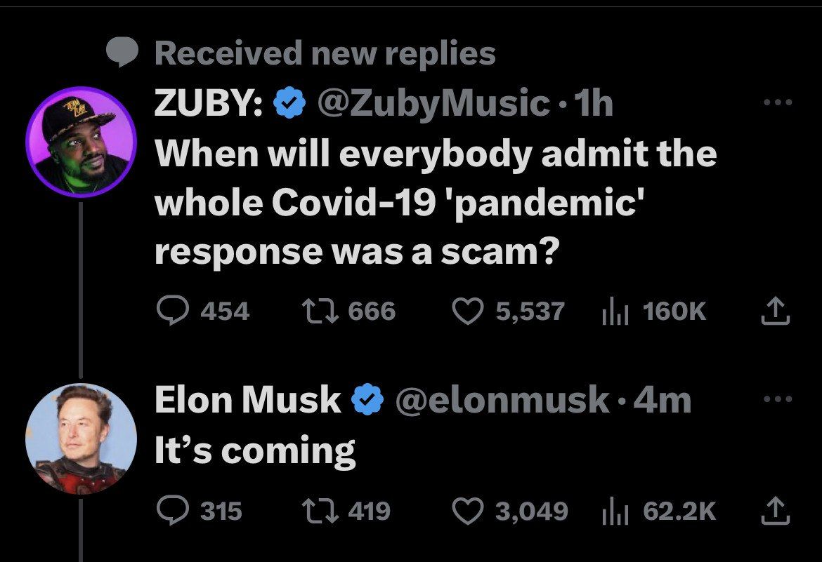 Within hours MUSK went after CHINA VIRUS and the cover up and EXPOSURE to man made virus ( lab leak) ///