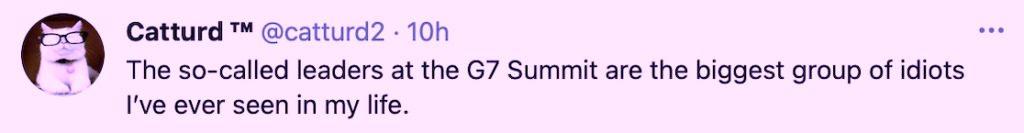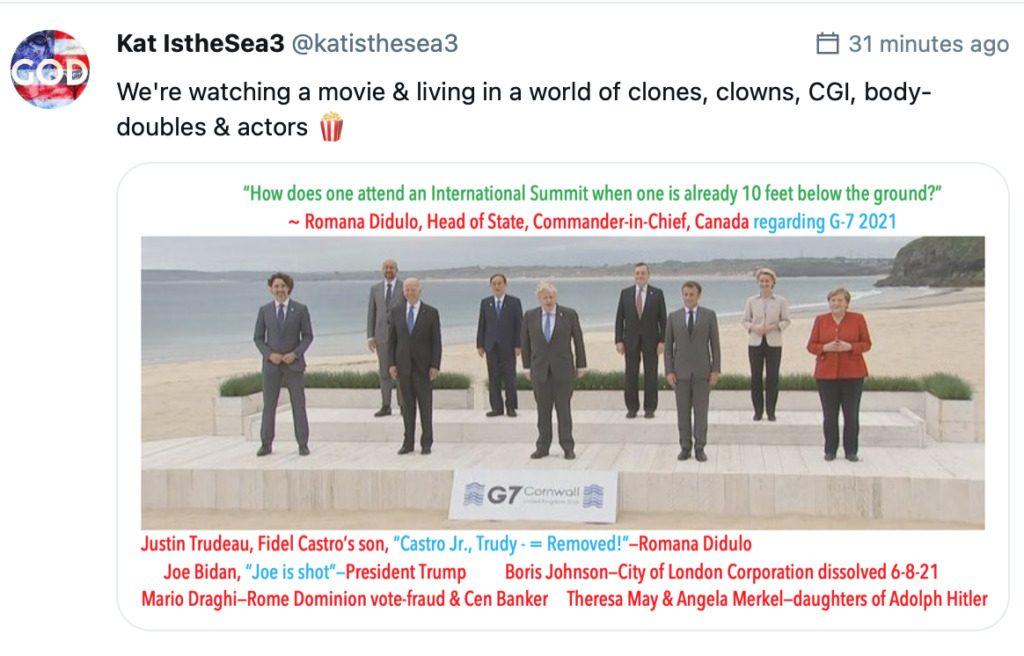 Then we have the G-7 clown show, that Charlie Ward called “a pantomime,” since, I believe, every one of those people has been arrested or are #Spacedust.