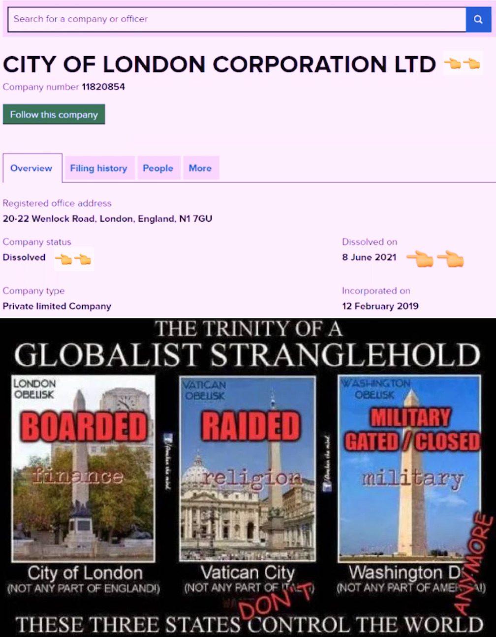 On his 6-9-21 Insider’s Club video, and I do not believe he will be upset with me for reporting this, Charlie Ward verified that the City of London Corporation was kaput as of June 8, 2021.