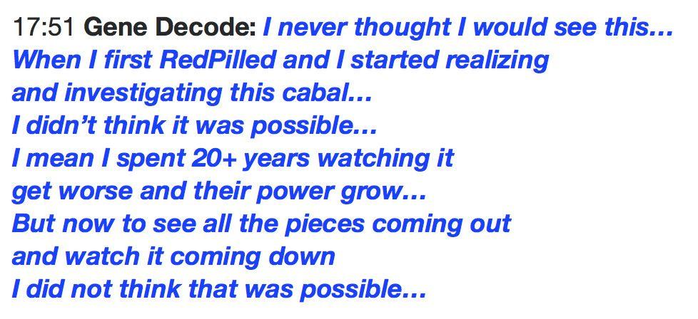 In a 9-18-20 interview with Charlie Ward, Gene Decode said the following: