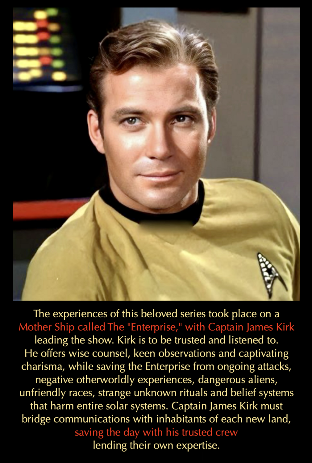 Donald J. Trump, acting as Commander in Chief of this rescue movie, established the United States Space Force, a cover front for the actual Enterprise Fleet where he serves as Captain. This fleet is better known in higher frequencies as a subsidiary of the Creation Light Ship, home to our rescue crew; the GREAT LIGHT.