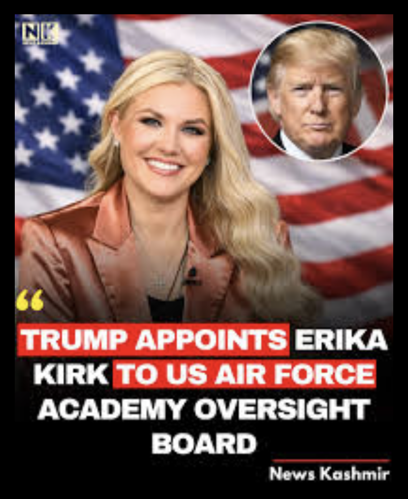 Next Movie scene: Erika Kirk is appointed to the UNITED STATES AIR FORCE, part of the Space Force, replacing her late husband Charlie JAMES KIRK.