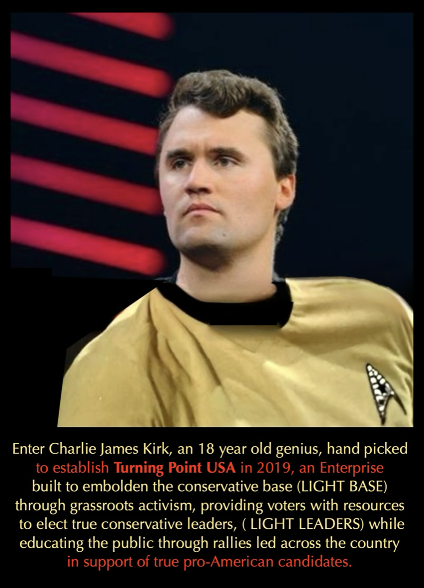 Once Charlie James Kirk became beloved and revered world wide as a household name and a trusted leader, he was assassinated publicly via what ‘appears to be’ an elaborate Highly Advanced Technologically staged CGI construct to ensure every tentacle of the dark web that must be exposed is somehow connected and revealed through the millions of anons, patriots, digital soldiers, podcasters, experts and citizen journalists outraged by the public assassination of their beloved leader, Charlie James Kirk, main founder of the Turning Point Enterprise.