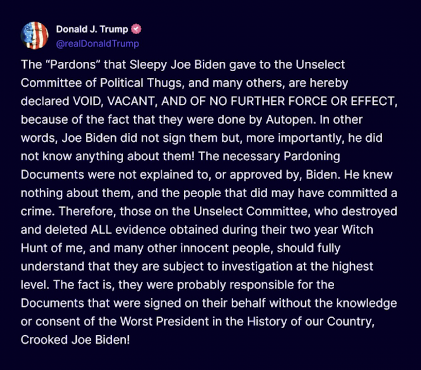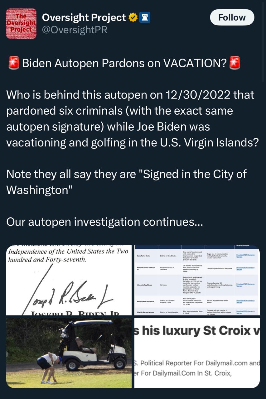 Before Fauci, General Milley, the Jan 6th Investigative House Committee, and most of the Biden Crime Cartel were pardoned in 2024, 6 other criminals were autopen pardoned in 2022 while faux Joe was on vacation.