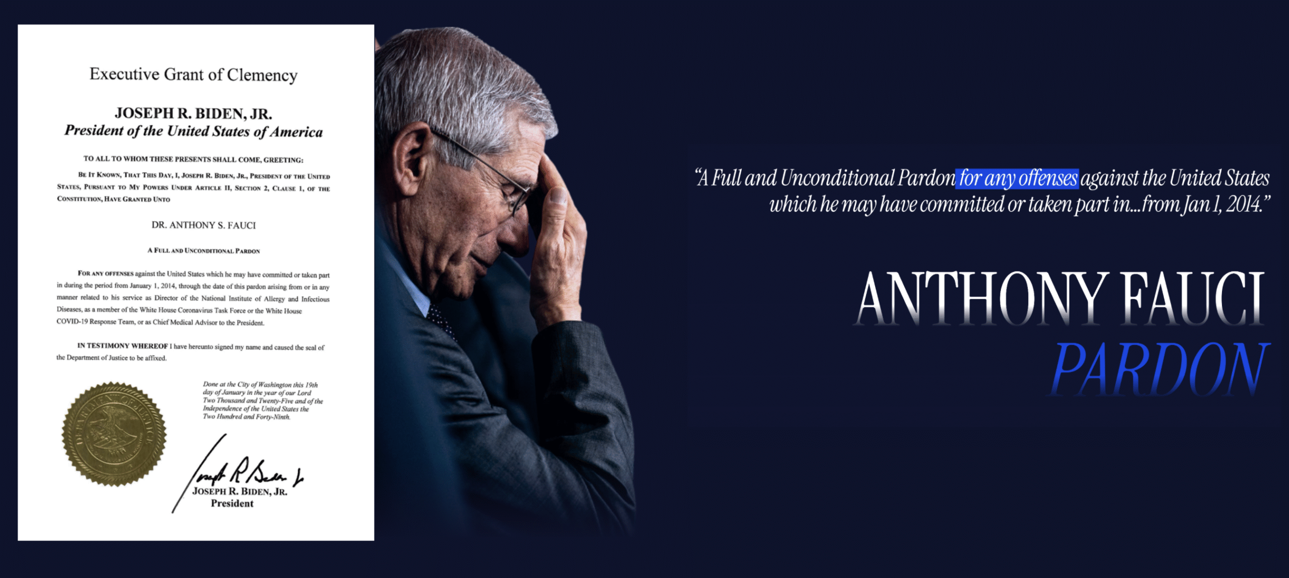 The actor playing Biden apparently gave Fauci a pardon in 2024 for all his crimes from 2014 on. These pardons were signed with an A.I. Autograph Pen. (Whoever controlled the autopen controlled the presidency. )