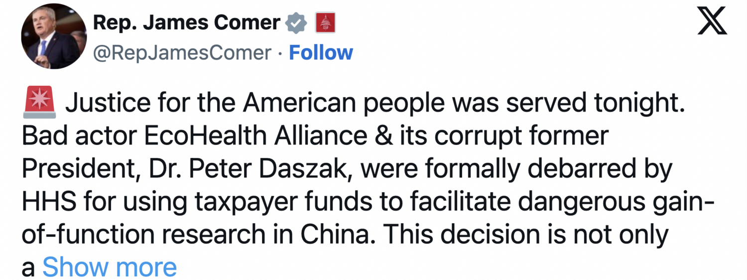 ~ The Department of Justice has opened an investigation into EcoHealth’s pandemic-era activities.