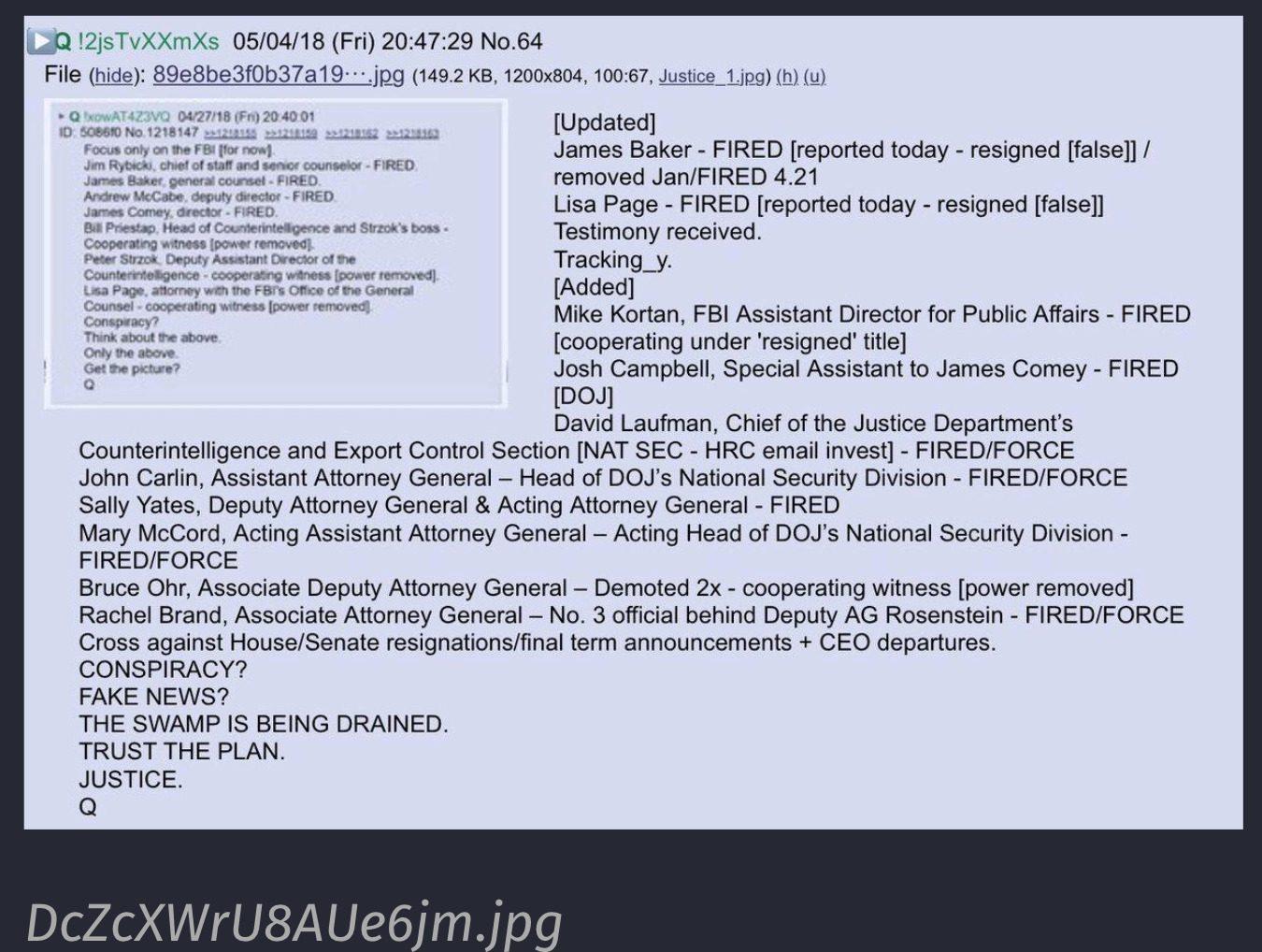 “Q was saying China was going to release a virus several years before it was going to happen and that they were going to steal the election and the Q team was going to let them do it just so that the military could take back control of the government and then conduct military tribunals. Oh, man! Years before it happened!