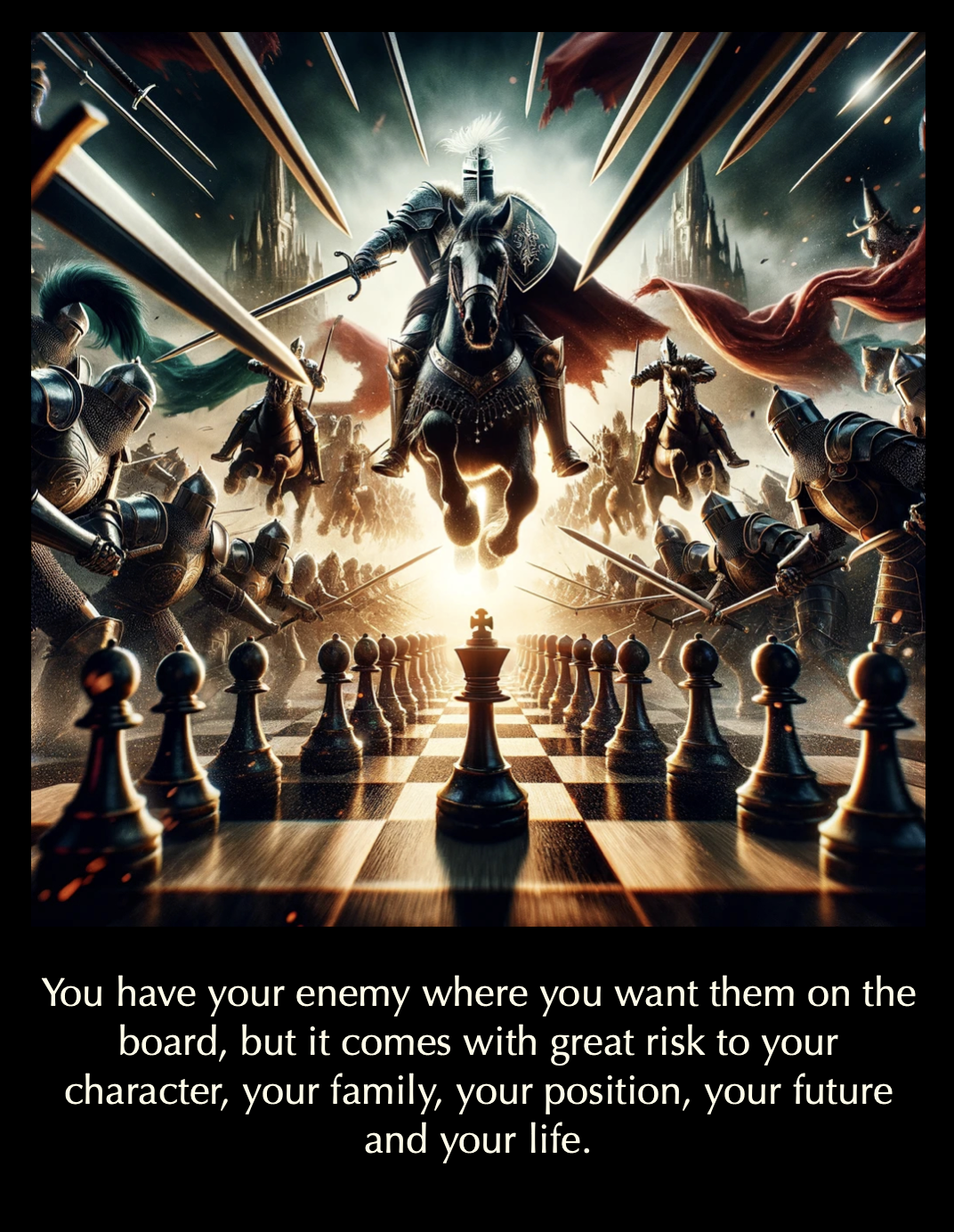 Those you need stand by your side to the end, knowing every move is saving lives. You let the others walk away and start a new group of friends that rally against you. This is important because you need to keep leveraging your enemy and you could lose all your friends in the process. You want them in good hands.