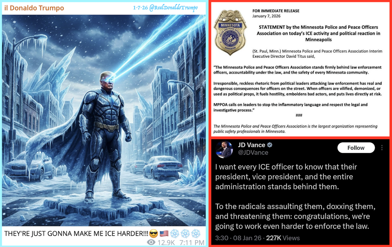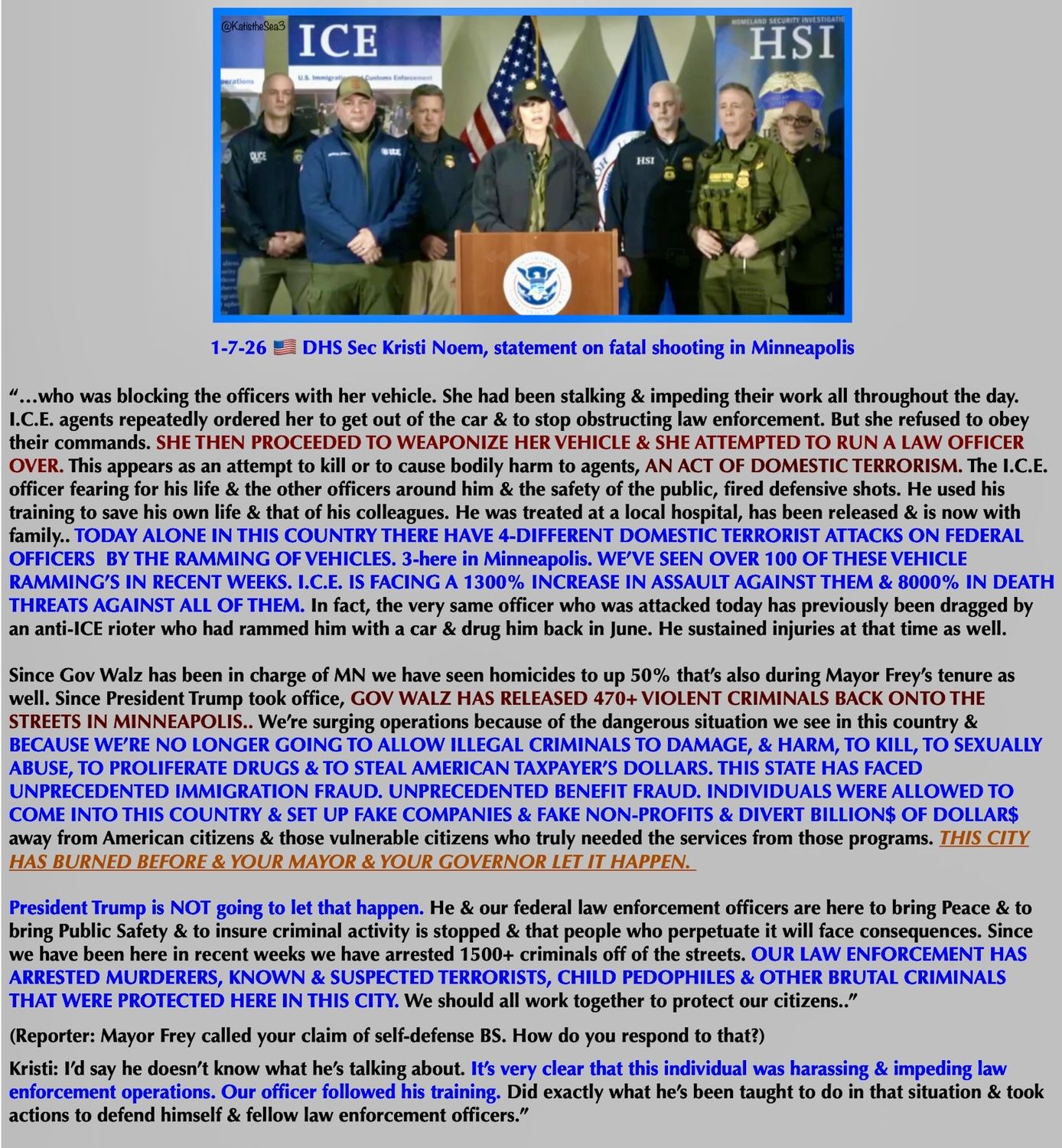 DHS claim that I.C.E. is facing a 1300% increase in assaults against them and 8000% in death threats, all for saving America.