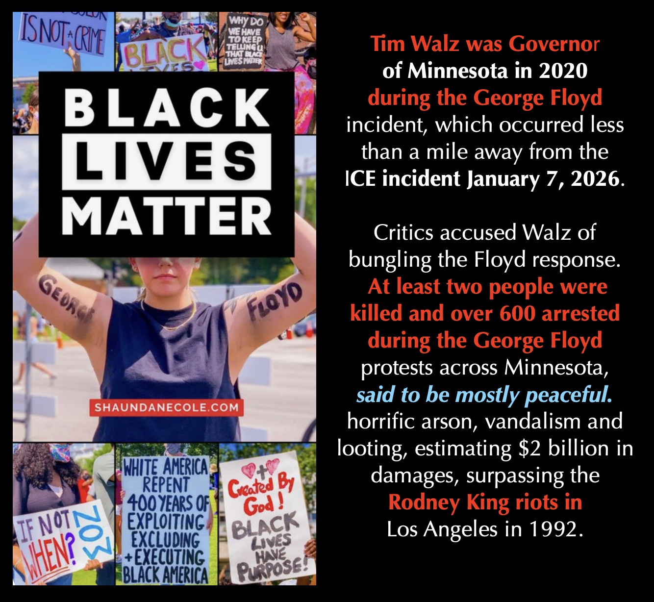 What a coincidence that Tim Walz has been the Governor of Minnesota during these two most recent World Viewed police incidents, leading to civil unrest.
